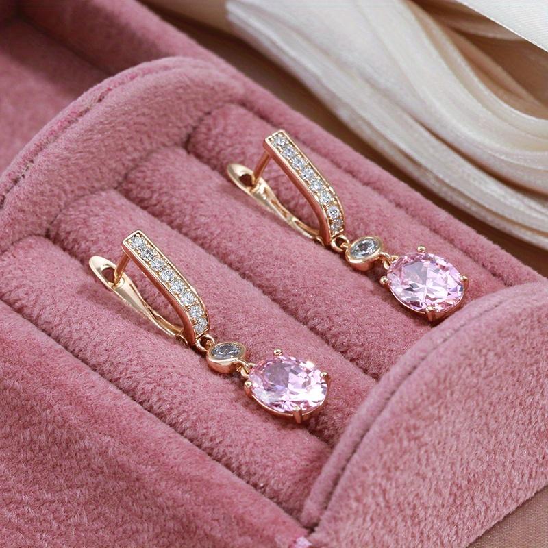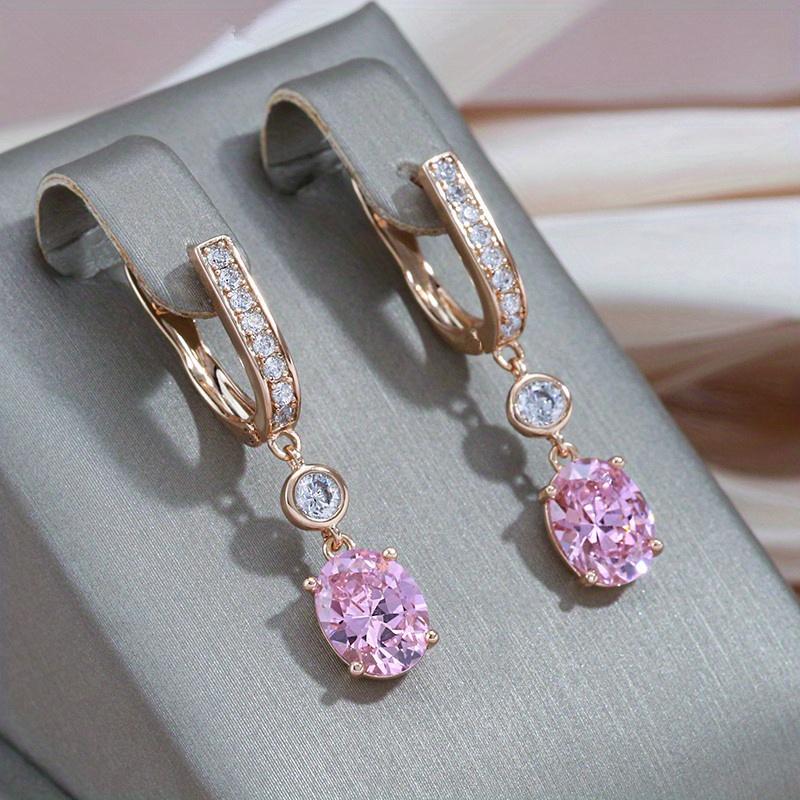 1 пара висячих серег с розовым цирконием для женщин, роскошные свадебные украшения для невесты, длинные серьги золотого цвета
