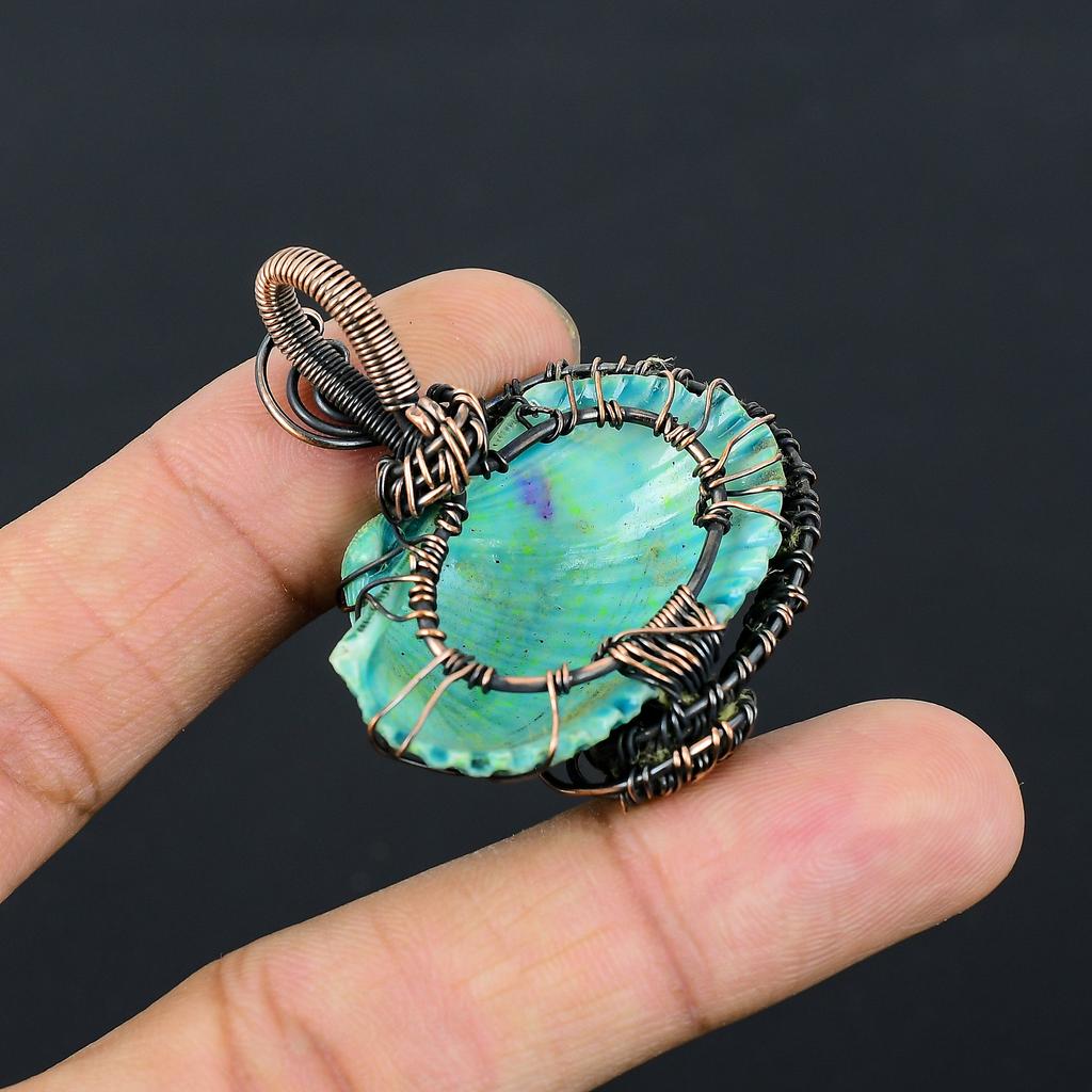 Подвеска ручной работы из медной проволоки из натурального аква-титанового ракушечника, 1,77 дюйма, E7s81