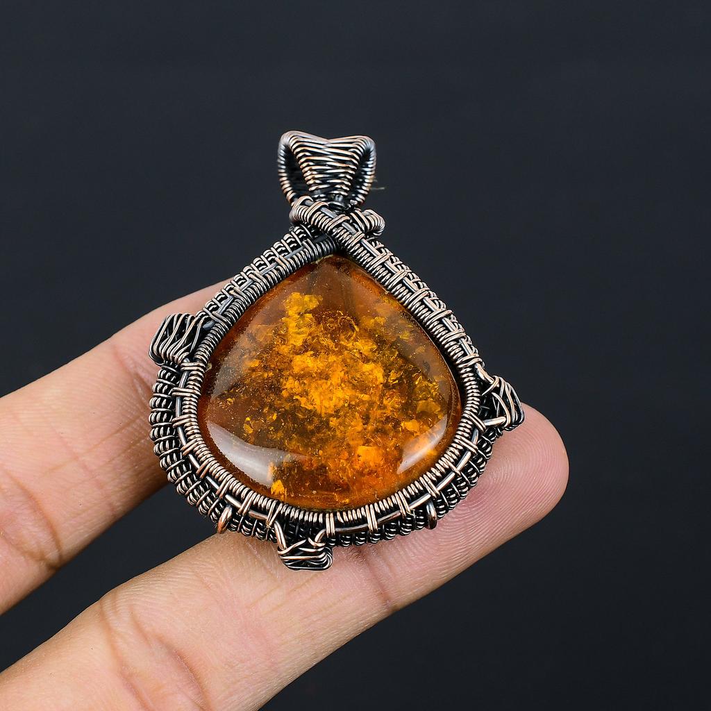 Подвеска ручной работы из медной проволоки из натурального балтийского янтаря, размер 2,17 дюйма, O1w20
