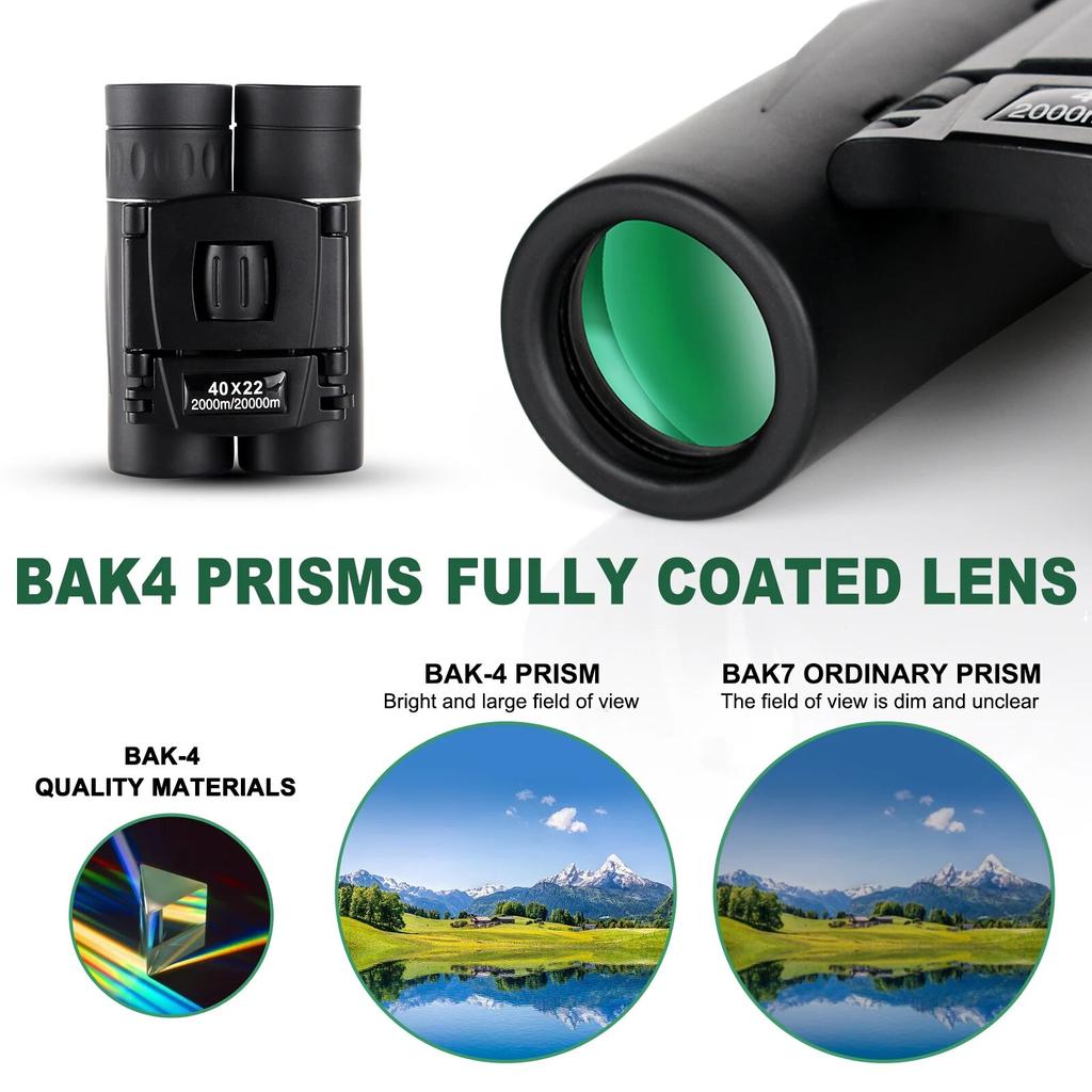 Портативный охотничий бинокль 40x22 HD складной бинокль телескоп BAK4 FMC оптика мини бинокулярный телескоп