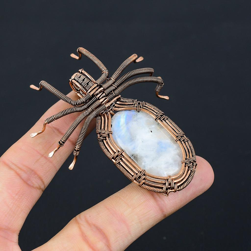 Подвеска-паук из натурального радужного лунного камня, медная проволока, 2,56 дюйма, M1b28