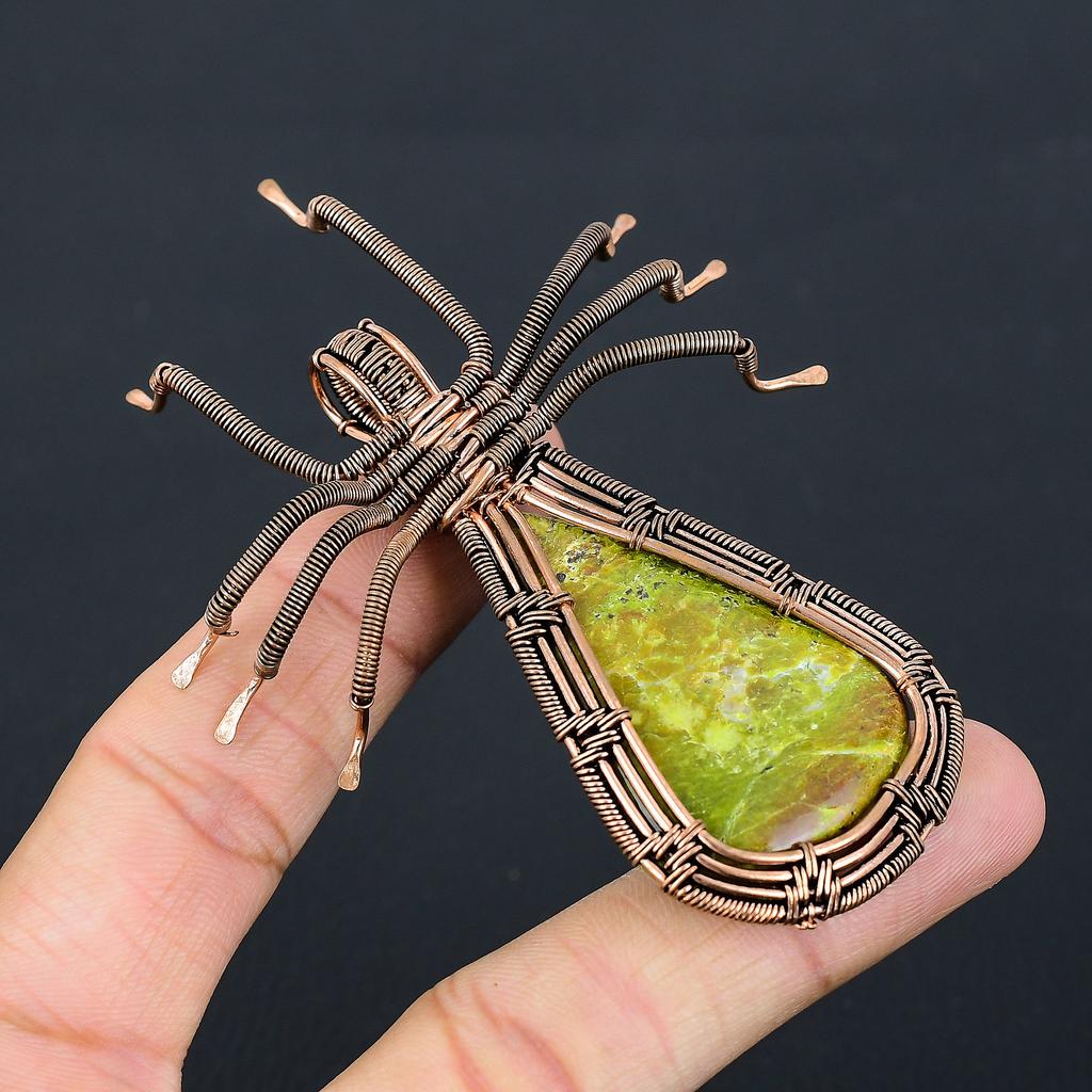 Подвеска-паук из медной проволоки ручной работы с натуральным зеленым опалом и драгоценным камнем 2,56 дюйма s9I97 — купить товар онлайн с бесплатной доставкой по всему миру!