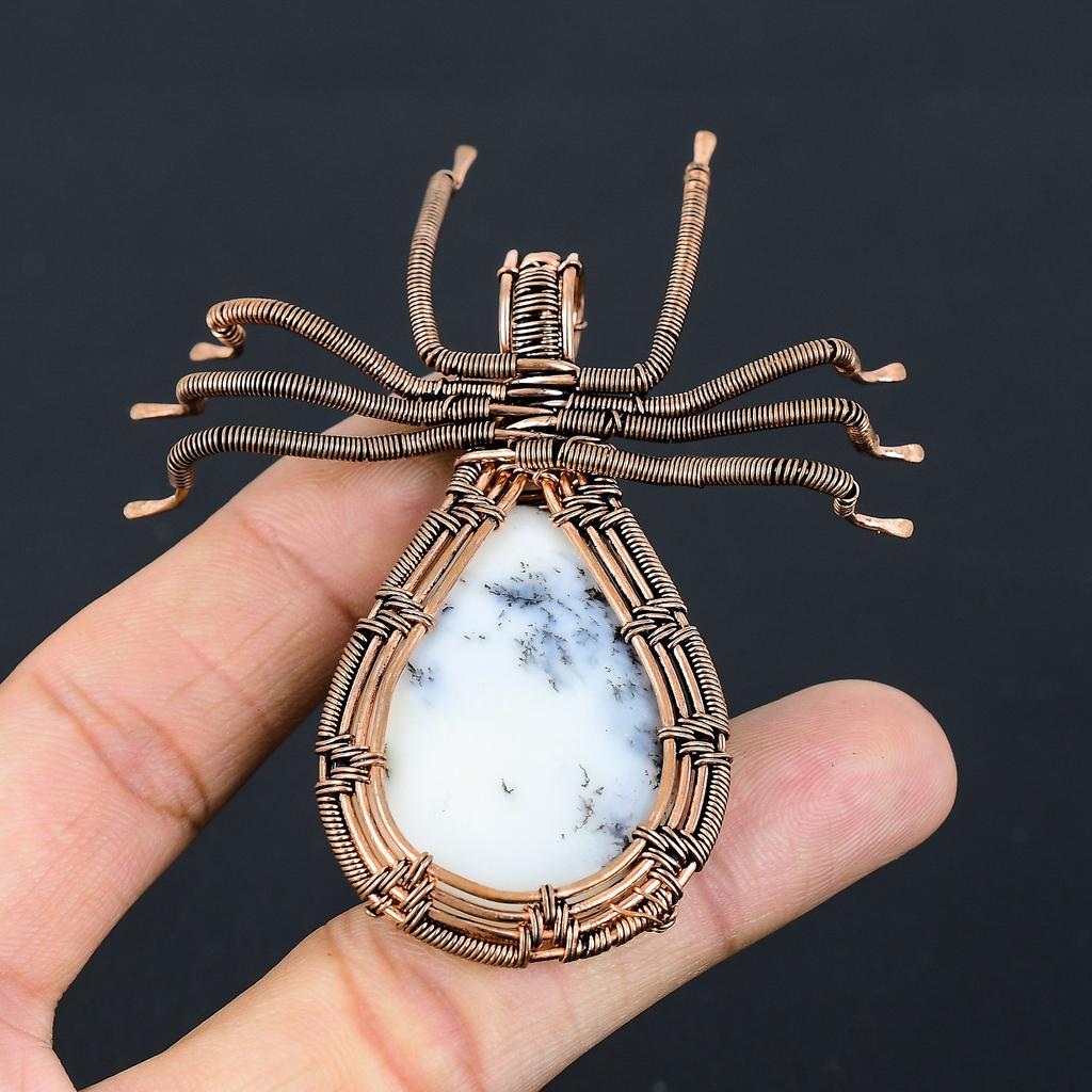 Natural Dendrite Opal Stone Handmade Copper Wire Wrap Spider Pendant 2.56" f6u79