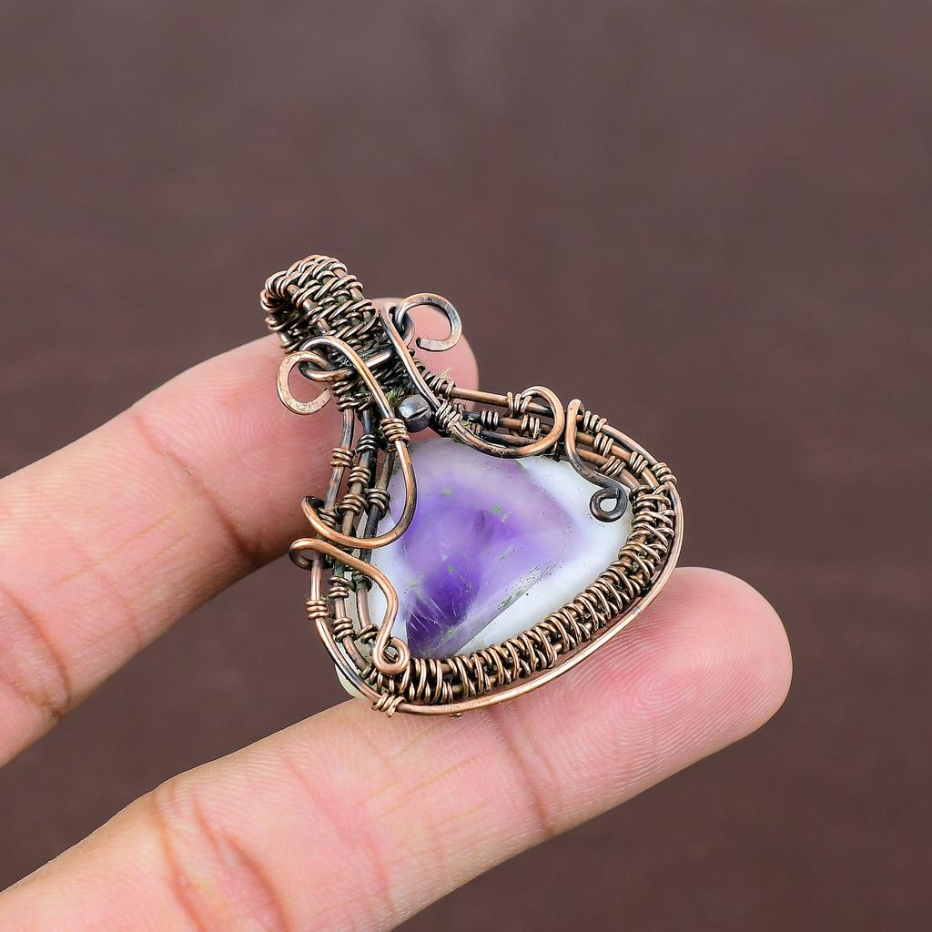 Подвеска ручной работы из медной проволоки с натуральным аметистом и шалфеем 1,85 дюйма Z2k09