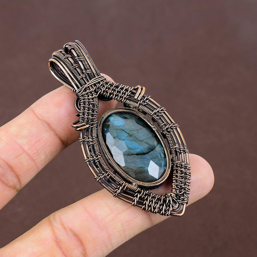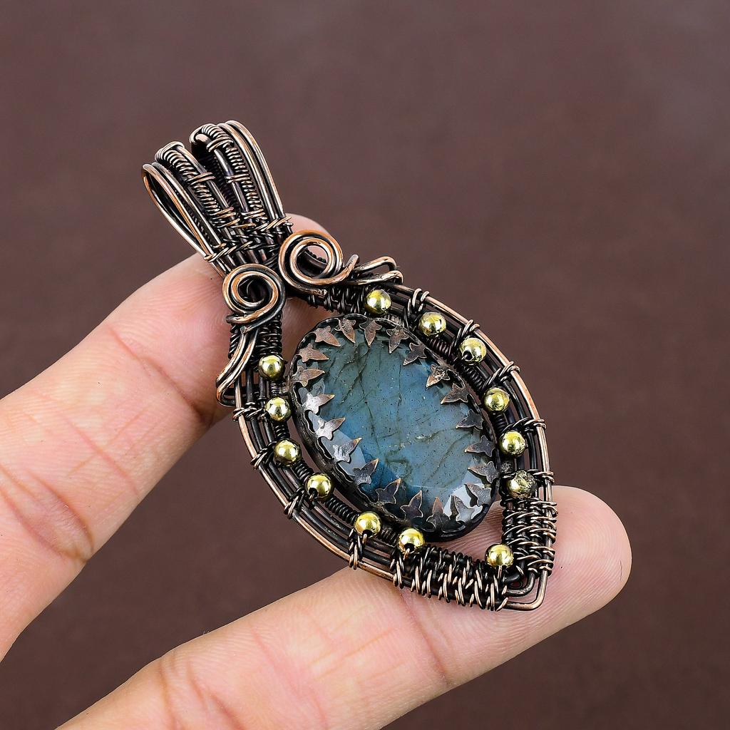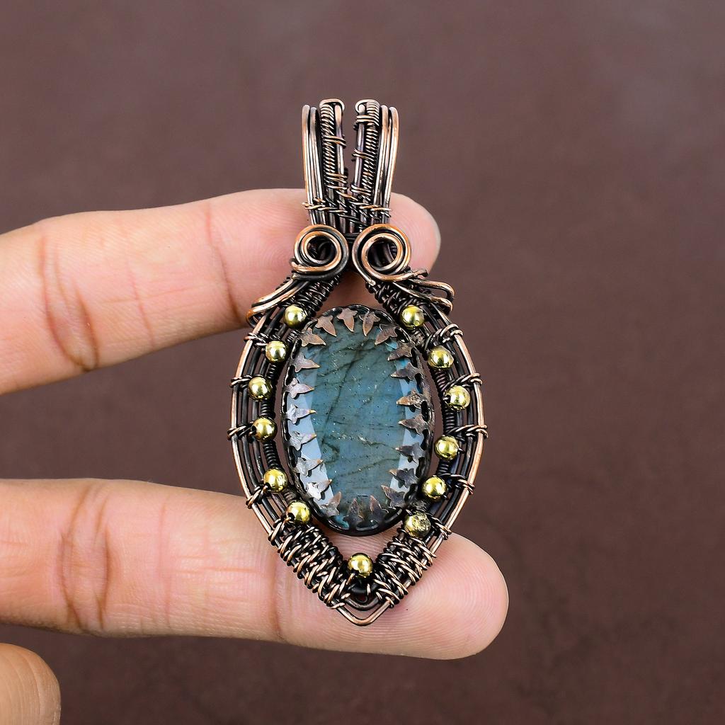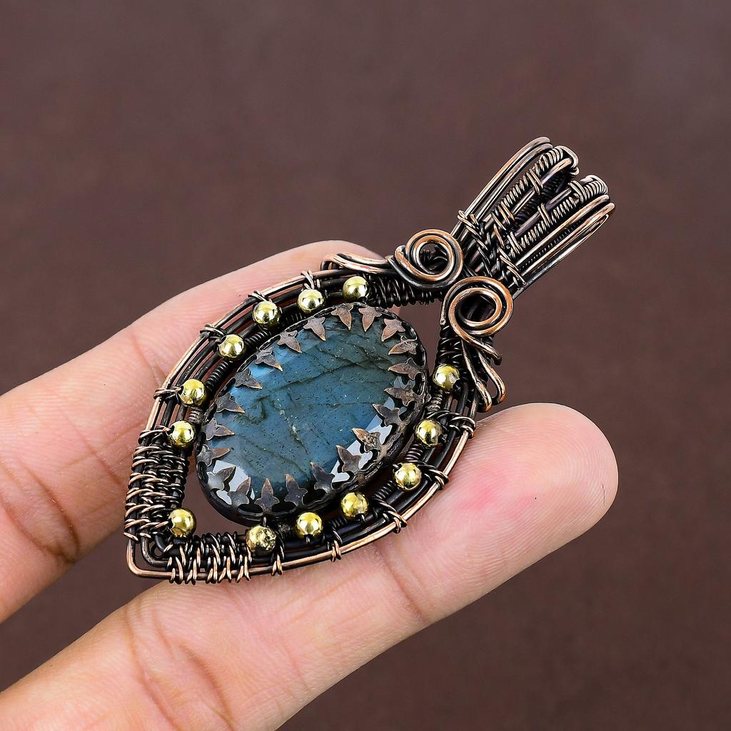 Подвеска ручной работы из медной проволоки из натурального лабрадорита 2,87 дюйма y0T68