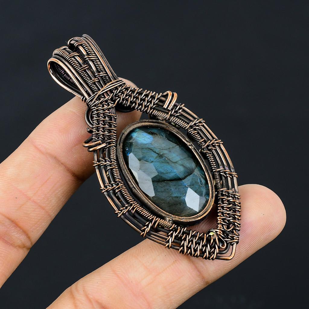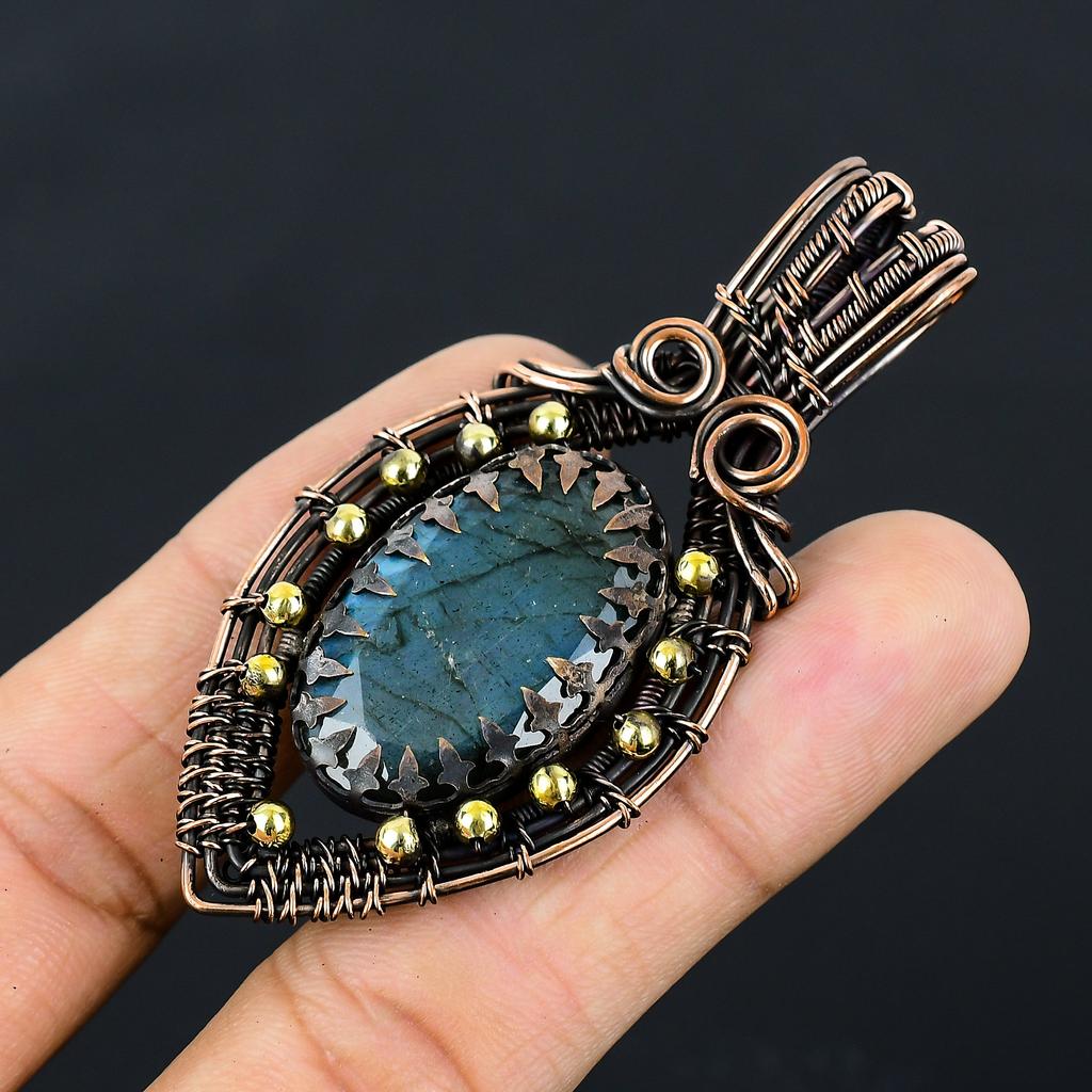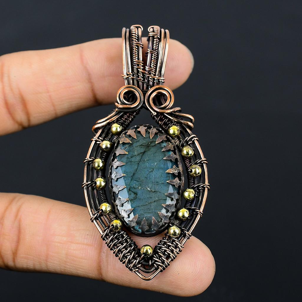 Подвеска ручной работы из медной проволоки из натурального лабрадорита, 2,87 дюйма, J4v81