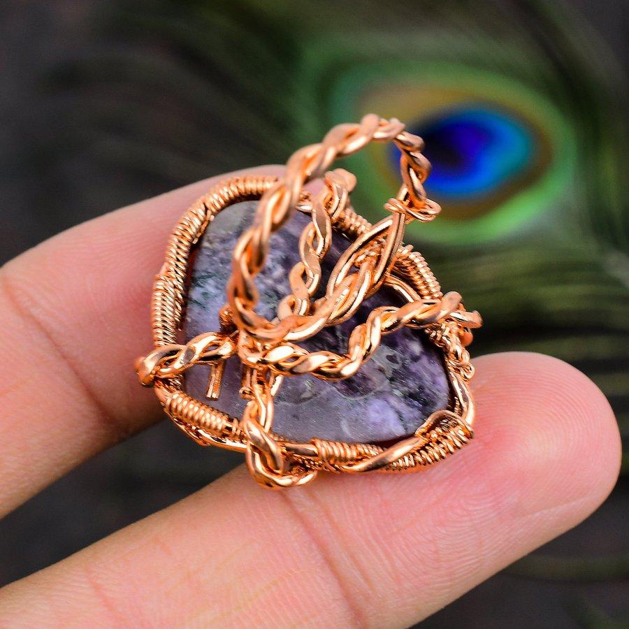 Подарочное кольцо из медной проволоки с натуральным русским чароитом, размер 7,5 K0y90