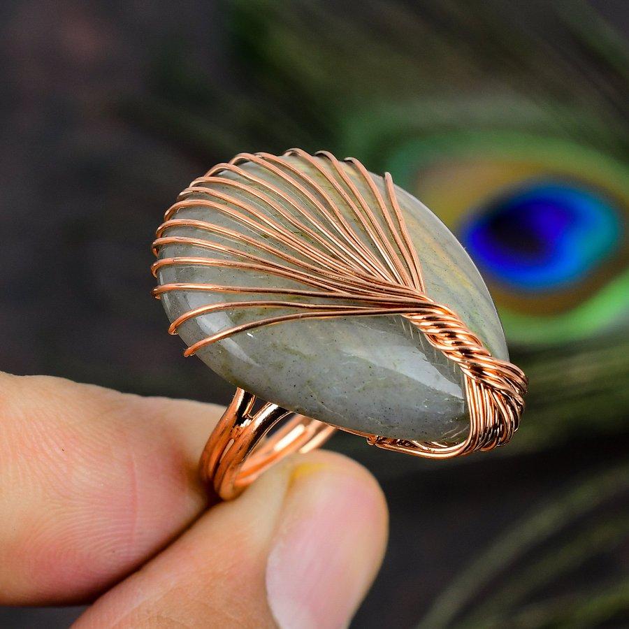 Подарочное кольцо ручной работы из медной проволоки с натуральным лабрадоритом, размер 8 u7C47 — купить товар онлайн с бесплатной доставкой по всему миру!