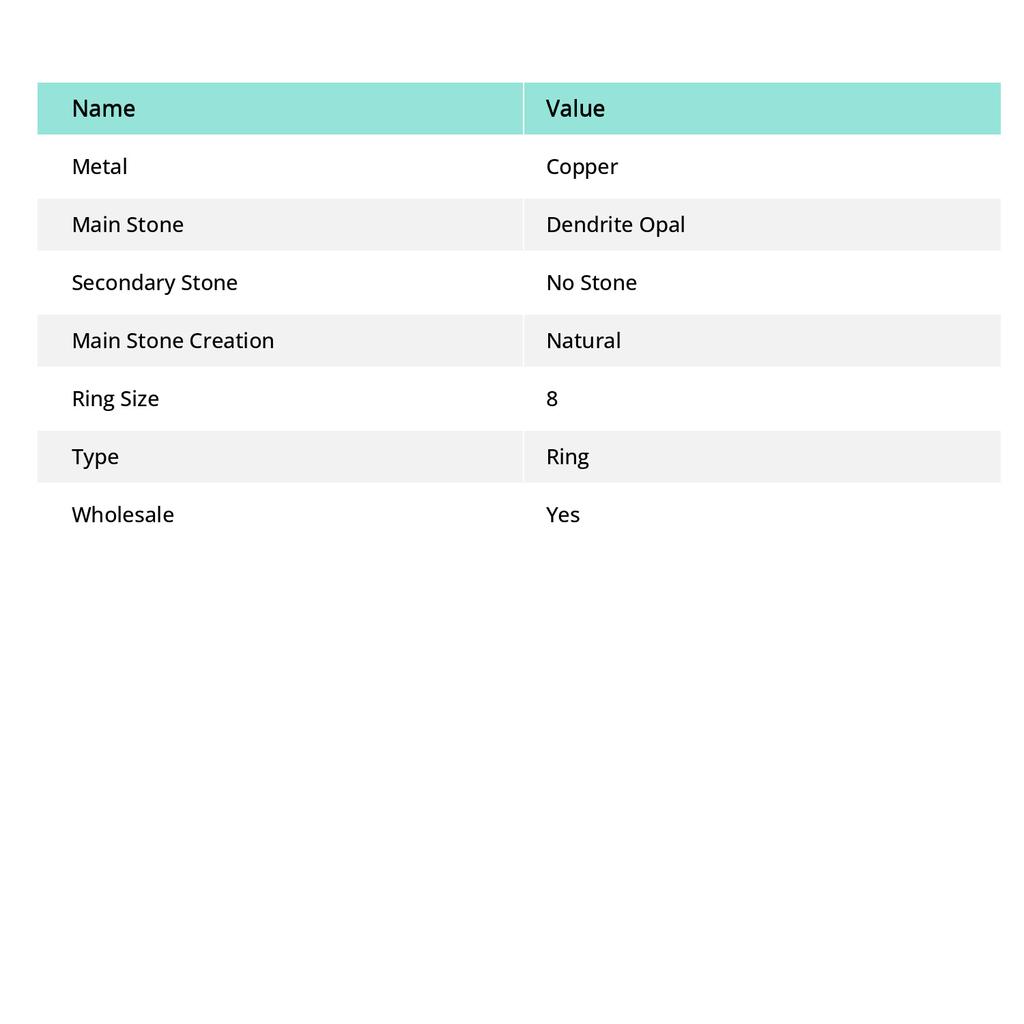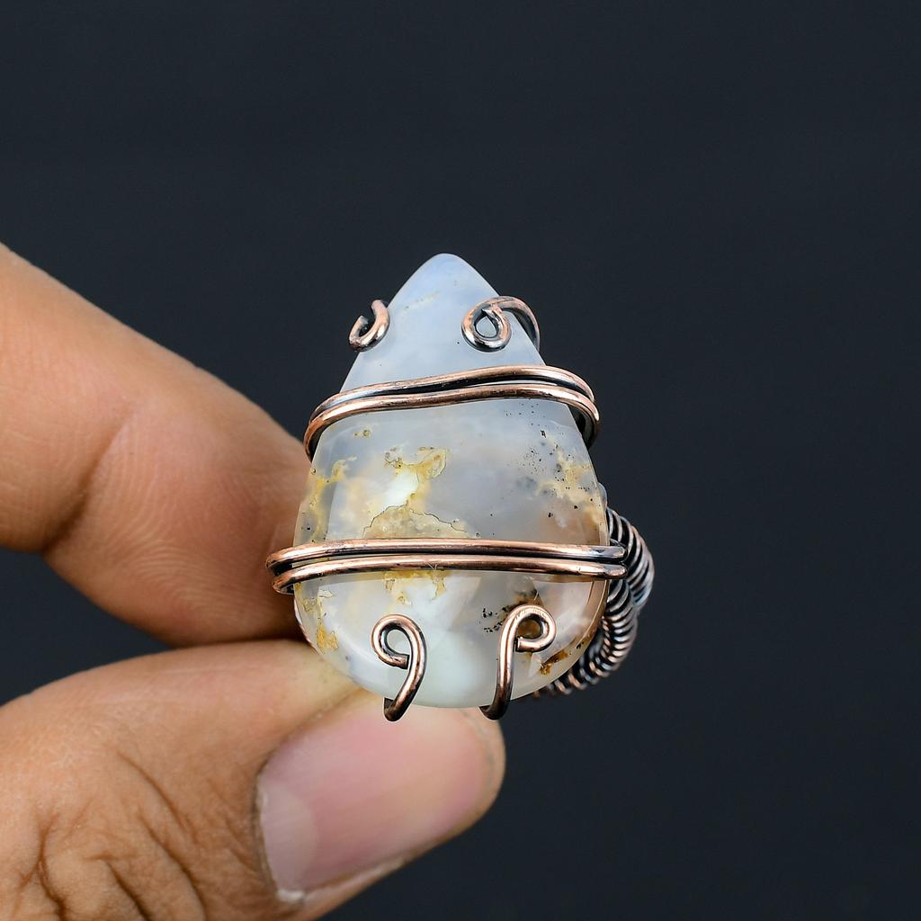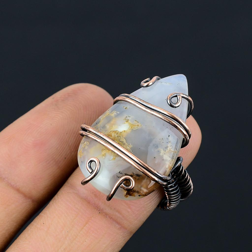 Натуральный дендритный опал, драгоценный камень, кольцо ручной работы из медной проволоки, размер 8