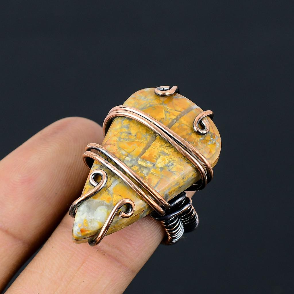 Кольцо из медной проволоки ручной работы с натуральным драгоценным камнем яшма шмеля, размер 7