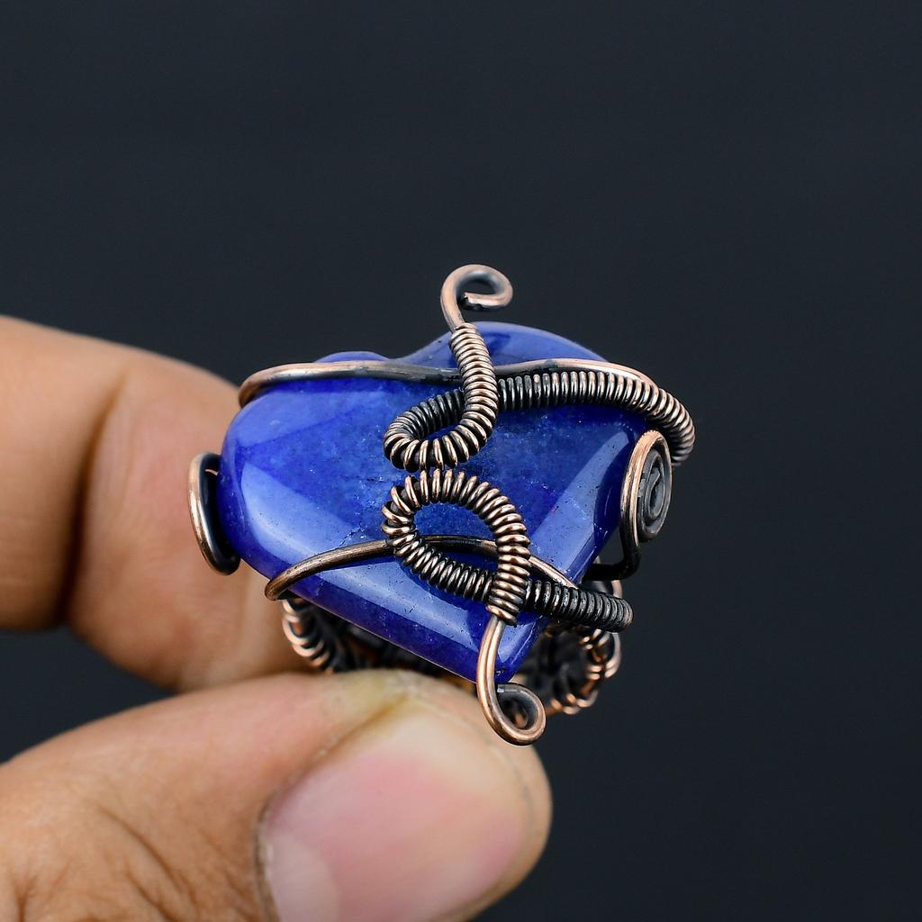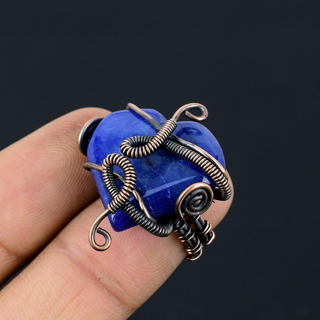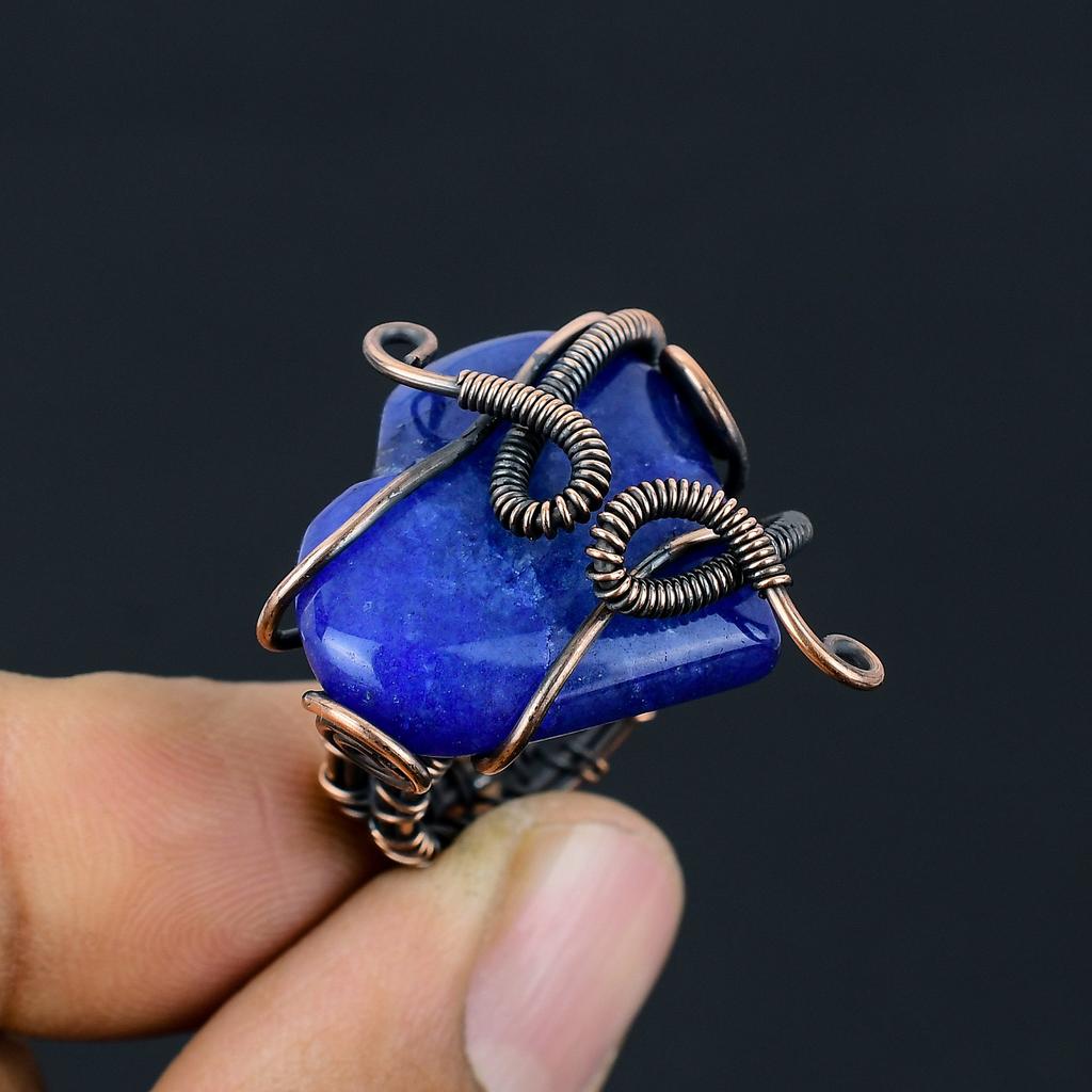 Подарочное кольцо ручной работы из медной проволоки с натуральным лазуритом и драгоценным камнем, размер 4 Z2s57