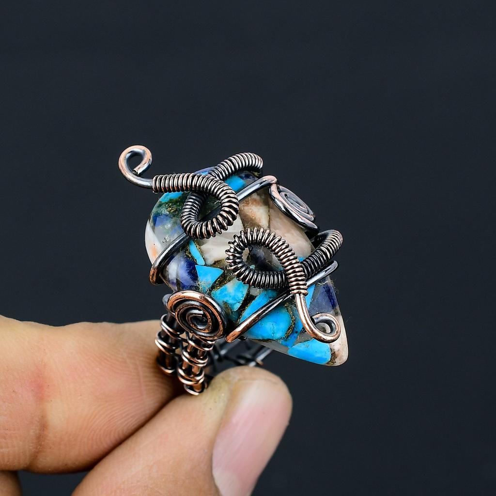 Подарочное кольцо ручной работы из медной проволоки с натуральным драгоценным камнем колючая устрица, размер 7 B7M74