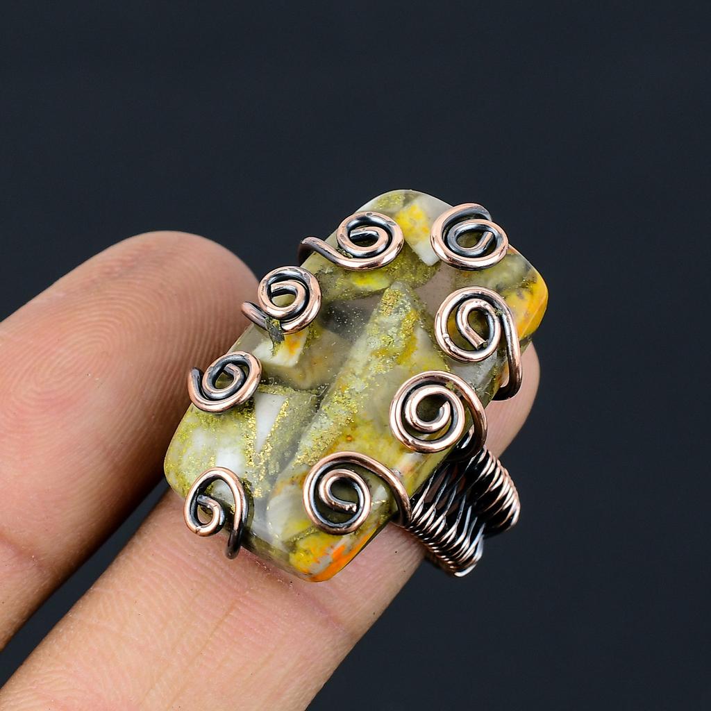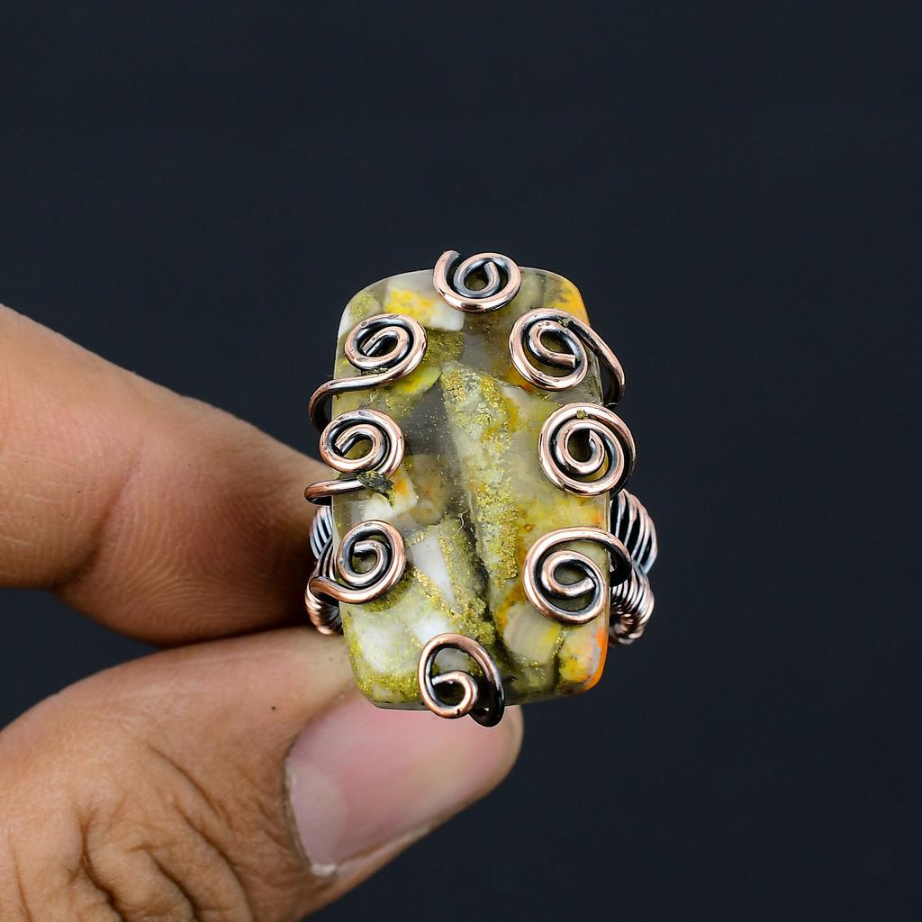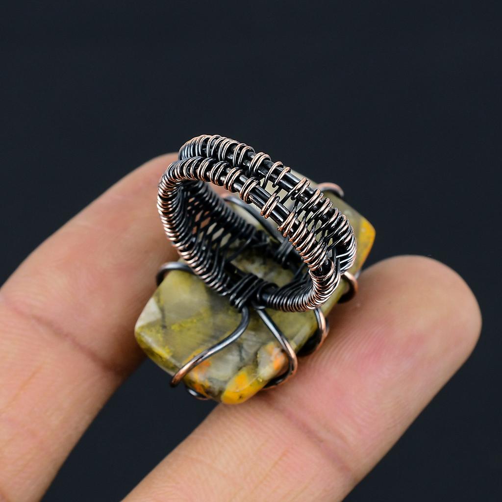 Кольцо из медной проволоки ручной работы с натуральным драгоценным камнем яшма шмеля, размер 9