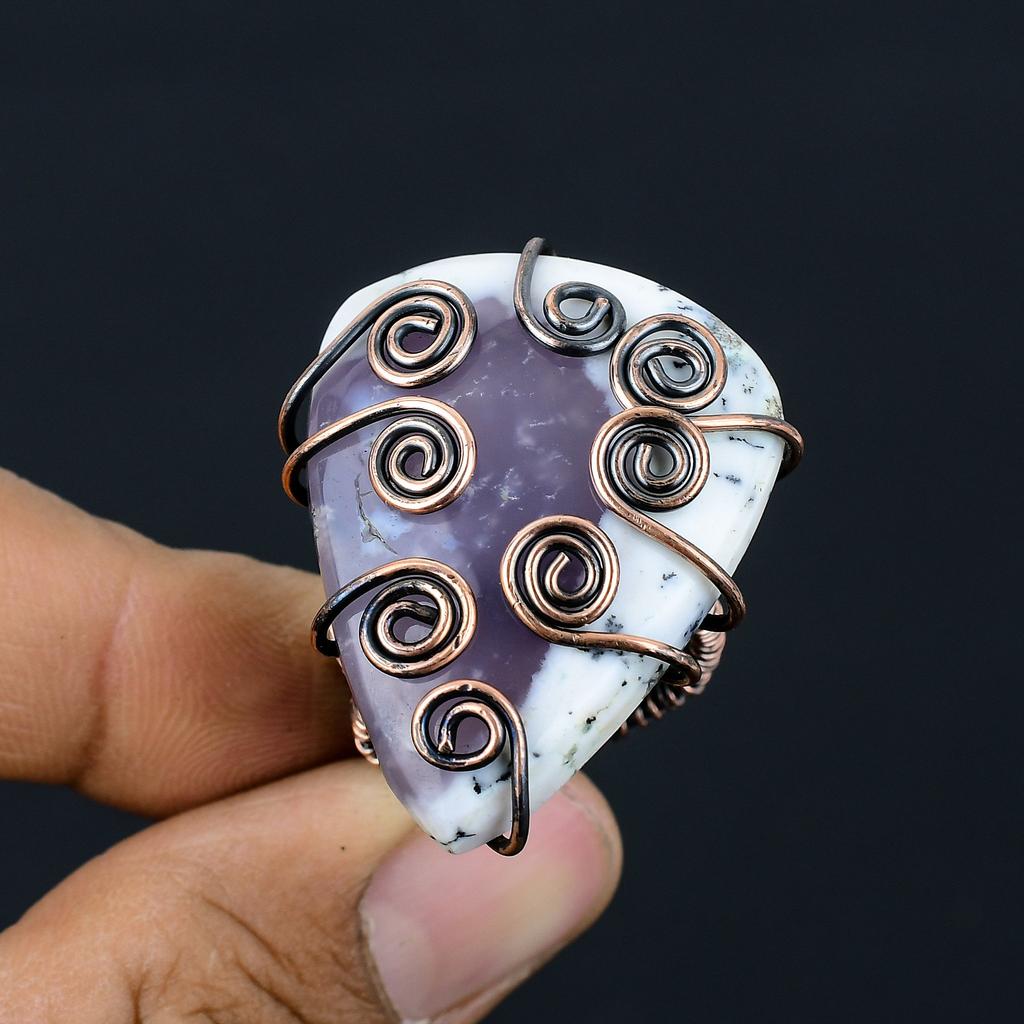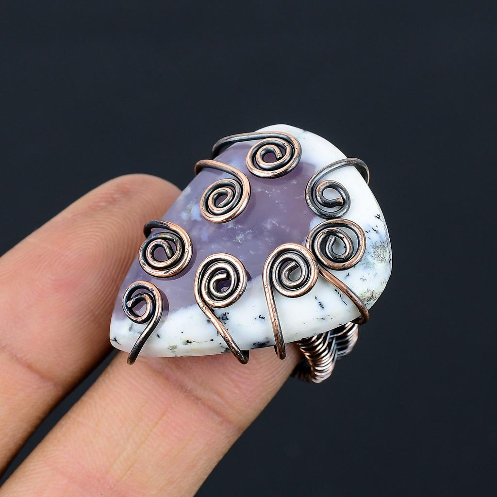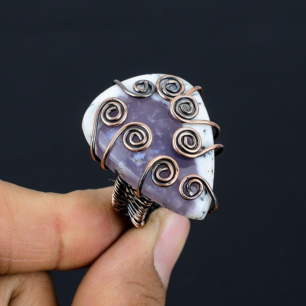 Натуральный дендритовый опал, драгоценный камень, кольцо из медной проволоки ручной работы, размер 9 V9U12