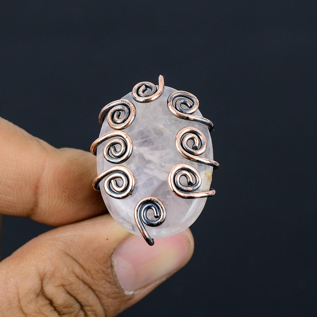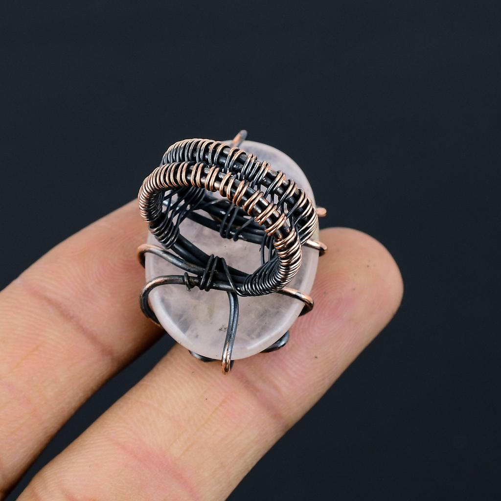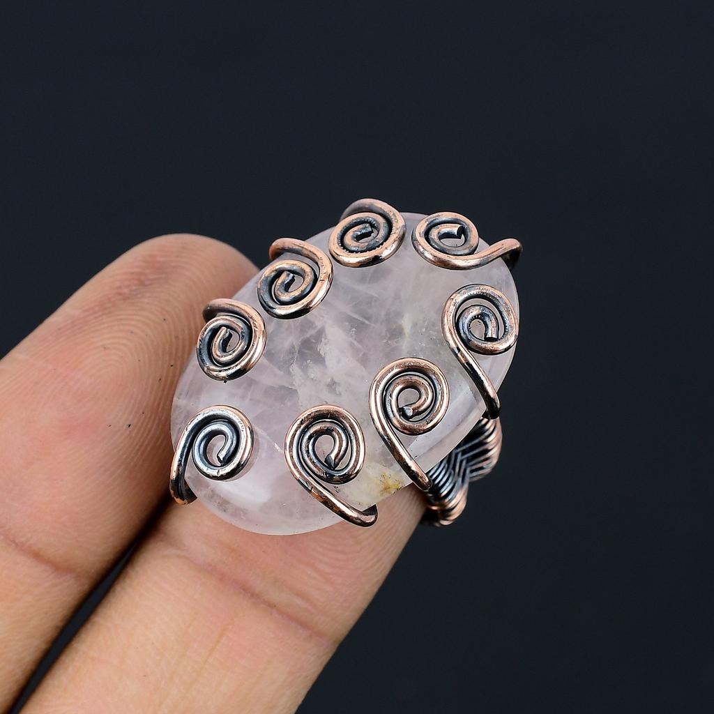 Кольцо из медной проволоки ручной работы из натурального розового кварца, размер 6,5 a0M13