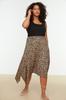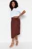Женская модная коричневая трикотажная юбка большого размера больших размеров с разрезом