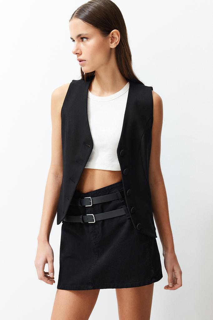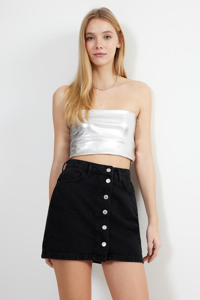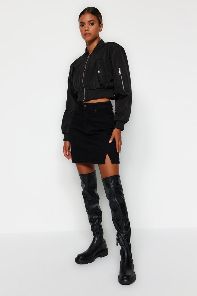 Женская модная черная базовая мини-юбка из денима с высокой талией