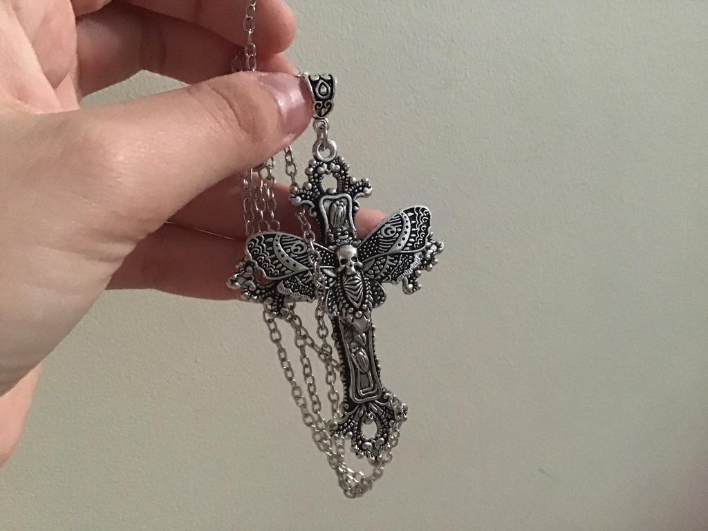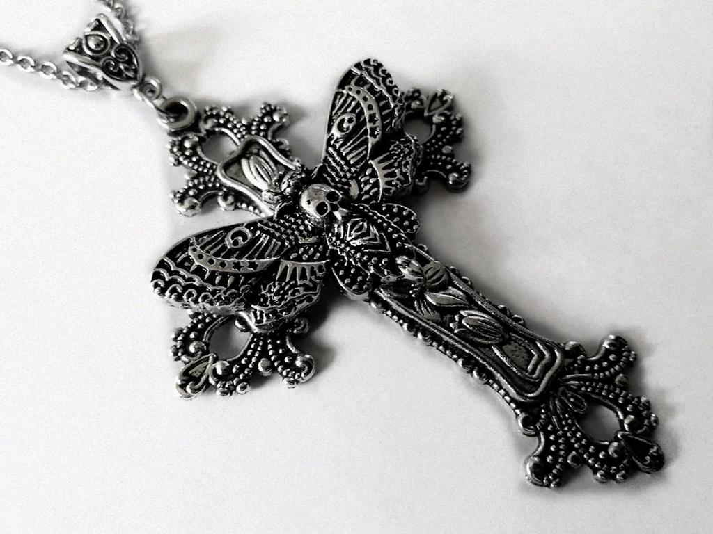 Большой крест мотылька, ожерелье, кулон, цветочная филигрань, викторианский винтажный готический стиль, отличный подарок для ее защитного амулета