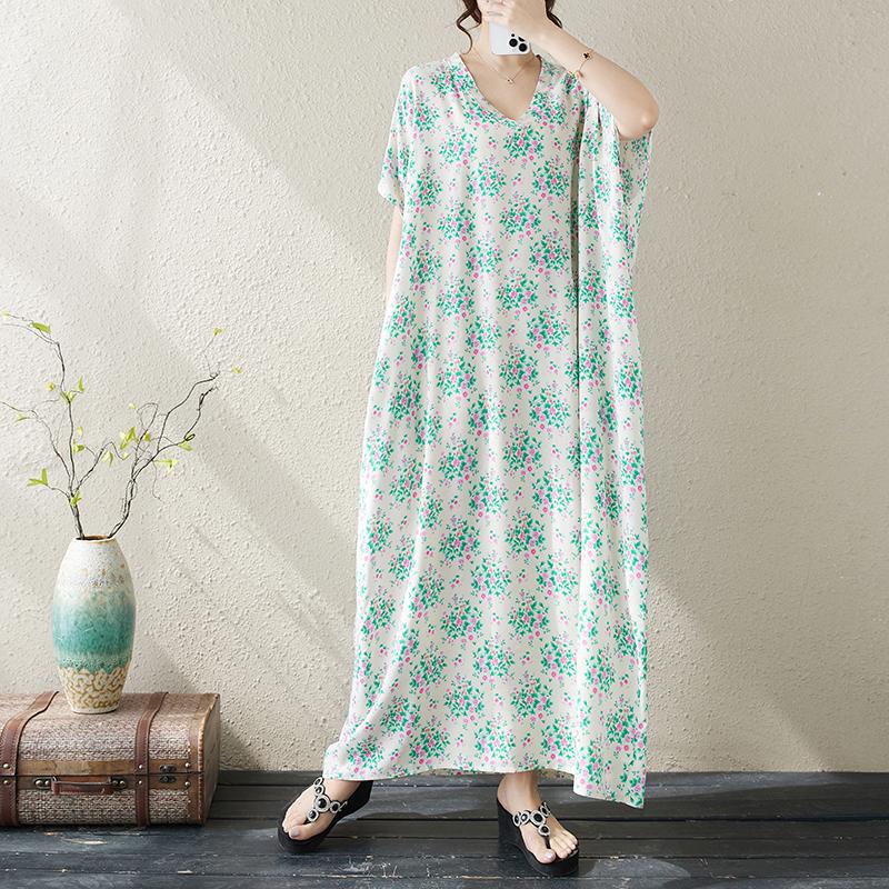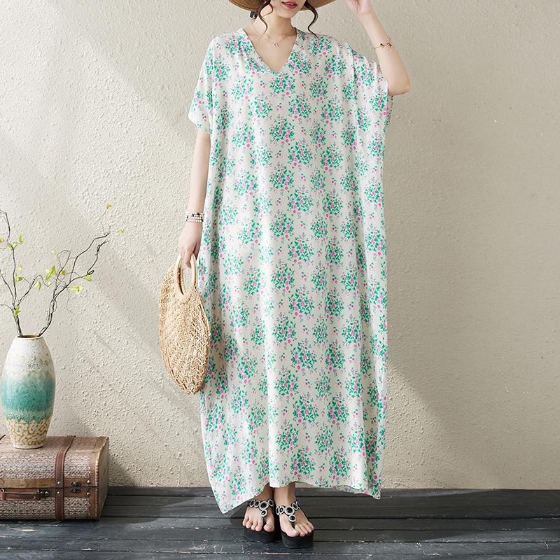 DIMANAF 2024 платье больших размеров женское летнее платье с v-образным вырезом богемный свободный макси-платье большого размера с цветочным принтом 5498