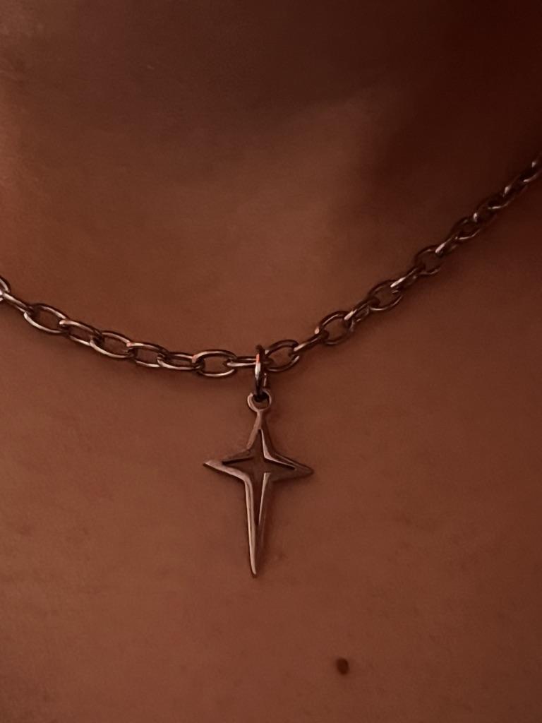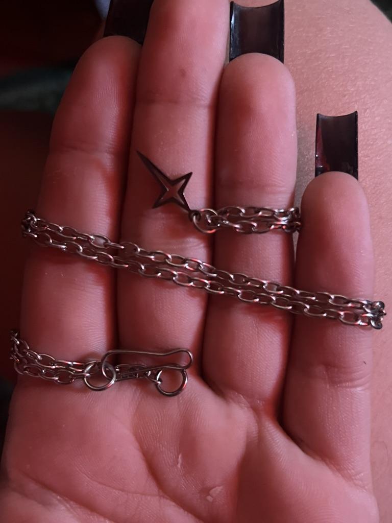 на картинке звёздочка больше, в реальности же меньше будет , но всё равно всё отлично. целая, хорошо всё закреплено. сама цепочка длинная. застёжка правда не понятная какая-то.