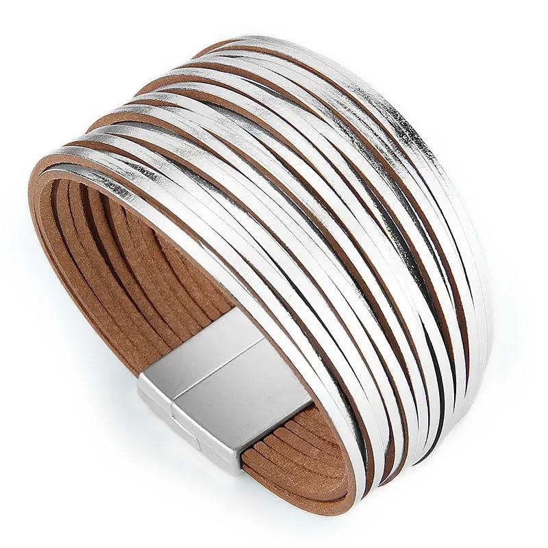WYBU разноцветный многослойный женский браслет, кожаный браслет ручной работы для женщин, широкий браслет с магнитной пряжкой, 2021, модные ювелирные изделия — купить товар онлайн с бесплатной доставкой по всему миру!
