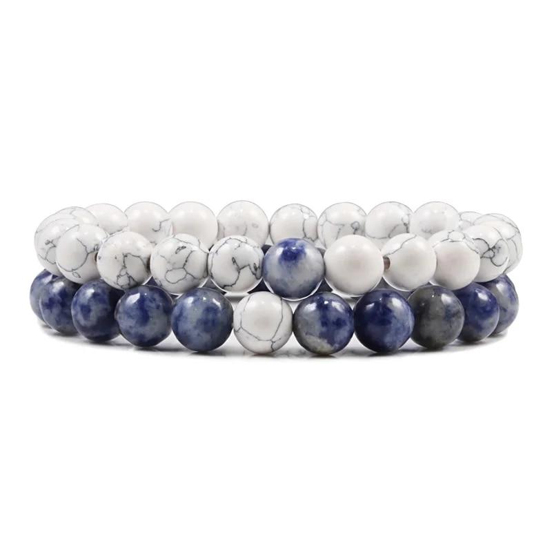 Набор браслетов для пар, черный, белый цвет, натуральный лавовый камень, тигровый глаз, бисерные браслеты для йоги для мужчин и женщин, эластичные ювелирные изделия из веревки
