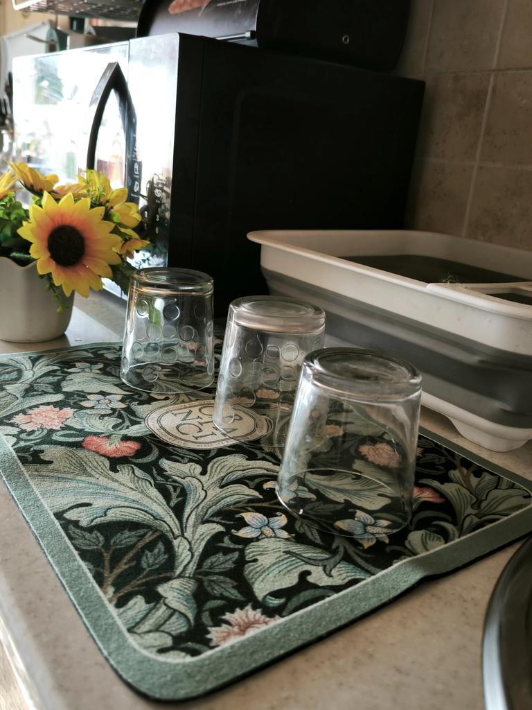 Коврик для сушки посуды ❤️ Это практичное и стильное дополнение к любой кухне. Его цветочный узор придает ему элегантный вид, который может украсить столешницу. На коврике достаточно места для размещения нескольких предметов посуды, включая тарелки, столовые приборы, чашки или стаканы. Материал коврика мягкий, что может предотвратить скольжение посуды и защитить ее от царапин. Коврик может стать полезным аксессуаром на кухне, помогая поддерживать порядок и сухость столешницы после мытья посуды, а его красивый дизайн добавит уюта. Обязательно рекомендую 👍 Удачных покупок ❤️ Ваша Вика 🙂