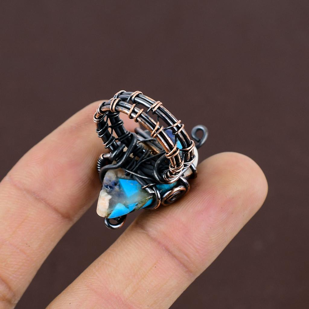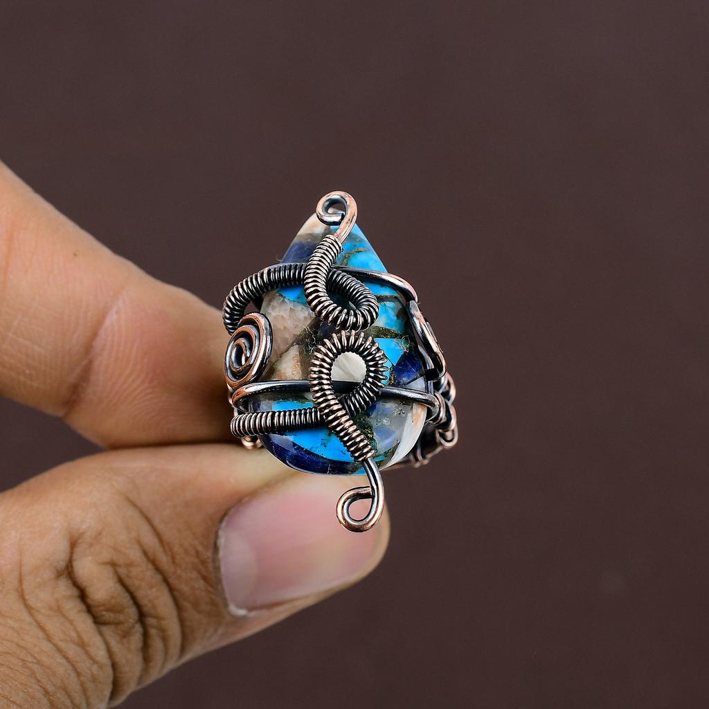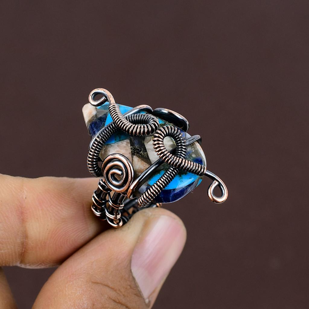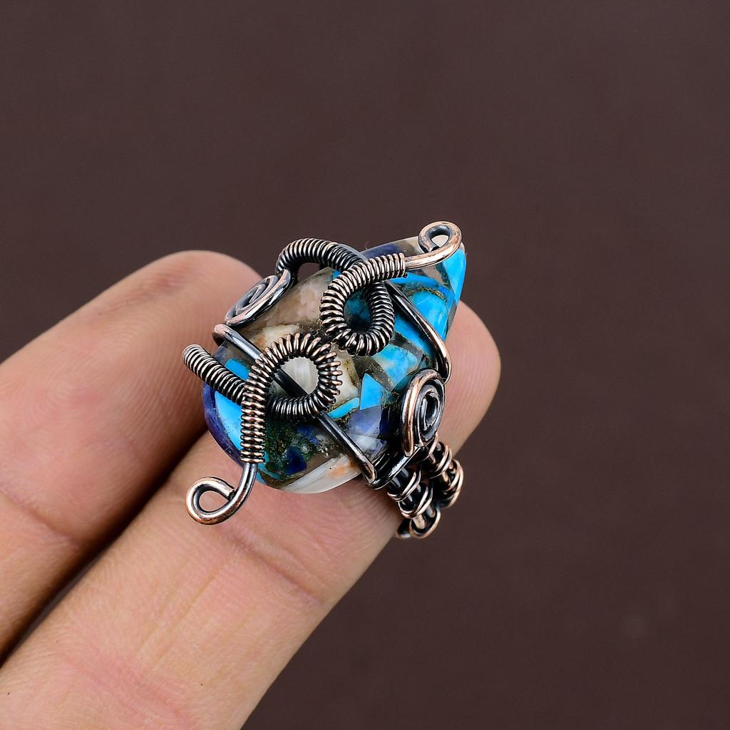 Подарочное кольцо ручной работы из медной проволоки с натуральным драгоценным камнем колючая устрица, размер 7 Z6p01
