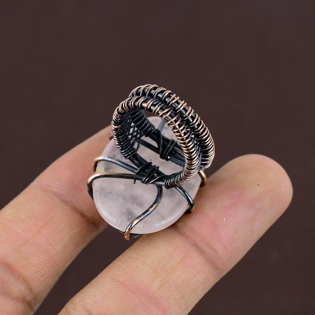 Кольцо из медной проволоки ручной работы из натурального розового кварца, размер 6,5 s2t02