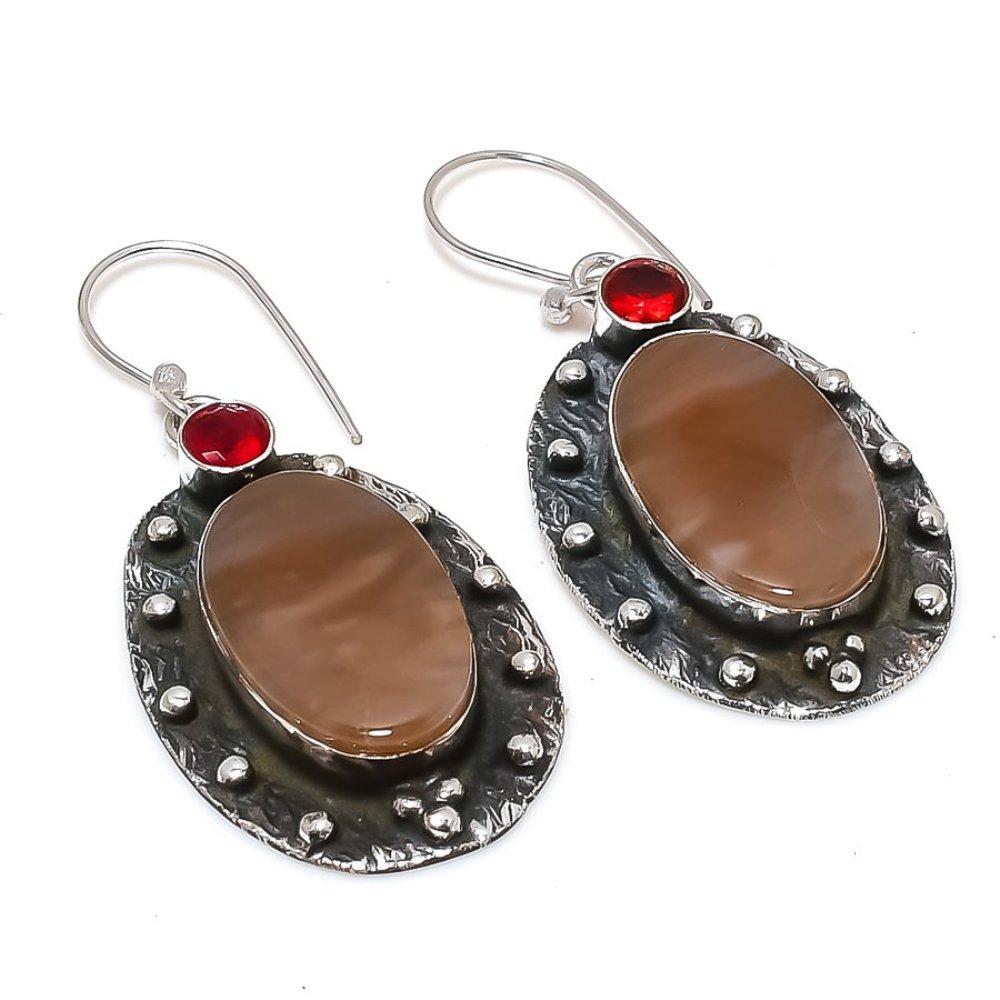 Серьги из стерлингового серебра 925 пробы с натуральным кремнем и гранатом 2,09 дюйма c4B86