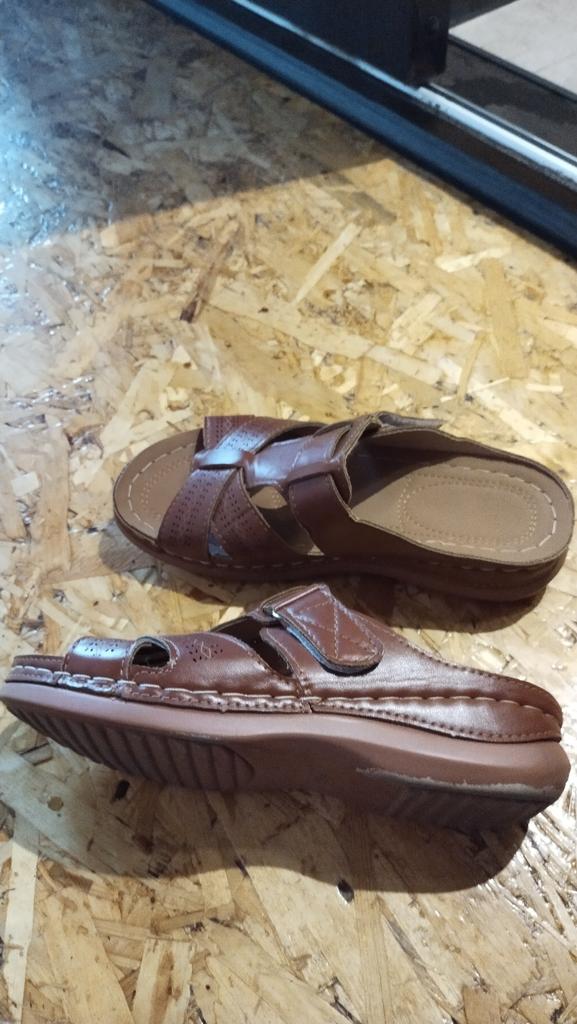 Шлепанцы соответствуют фото . Цвет коричневый один в один . На 37 размер взяла 38 и подошли идеально . На узкую ногу . На мою среднюю ногу ремешки съехали в бок , а не по центру . Сшиты хорошо , все просторочены . Если бы был качественный материал верха , то все было просто замечательно . Материал босоножек тонкий , как клеенка , мнется . Буду носить в огород или дома вместо тапок , если смогу сместить ремешки к центру . Надолго не хватит такой обуви . Цена 797 руб и этих денег жалко . Из-за некачественного материла не подходит.