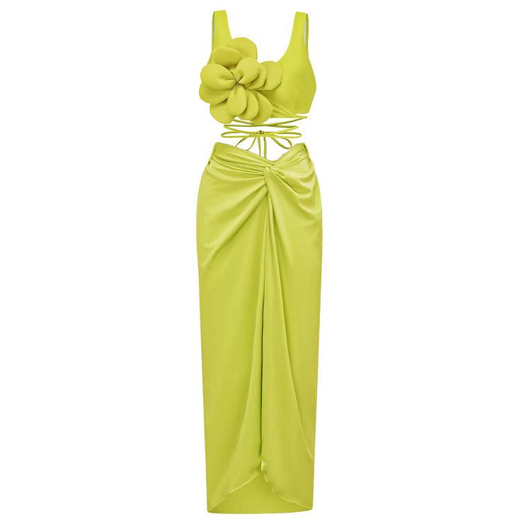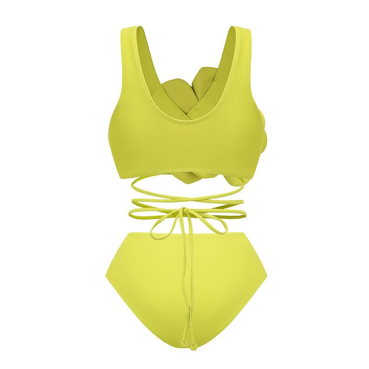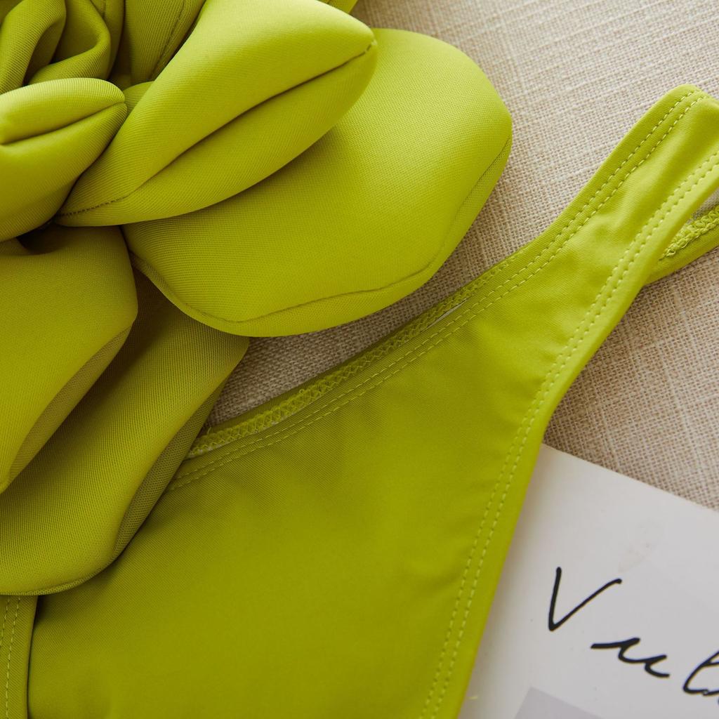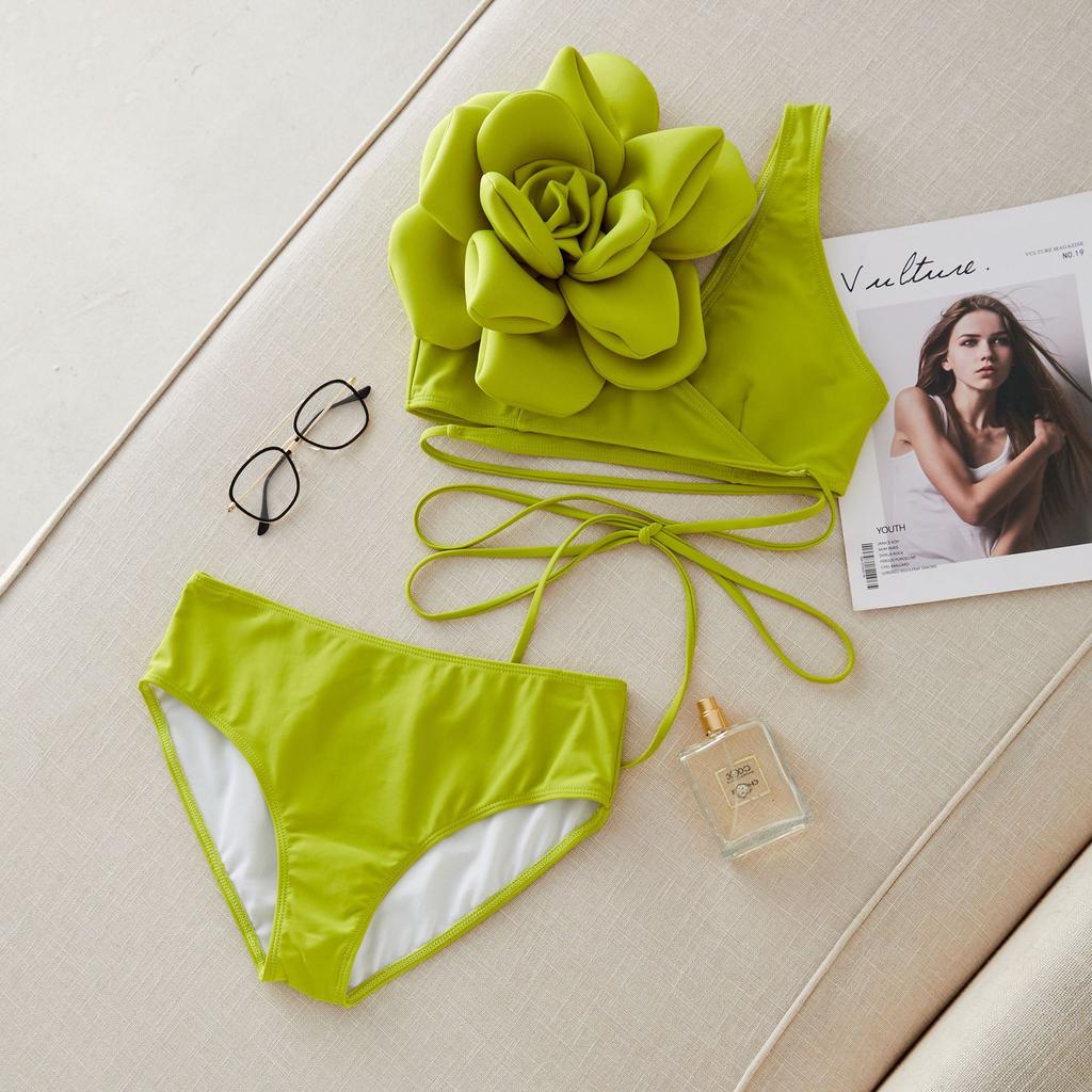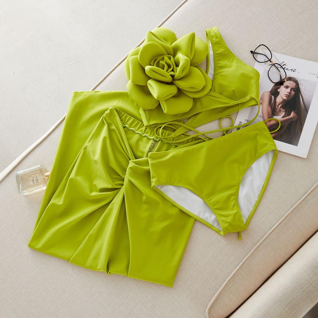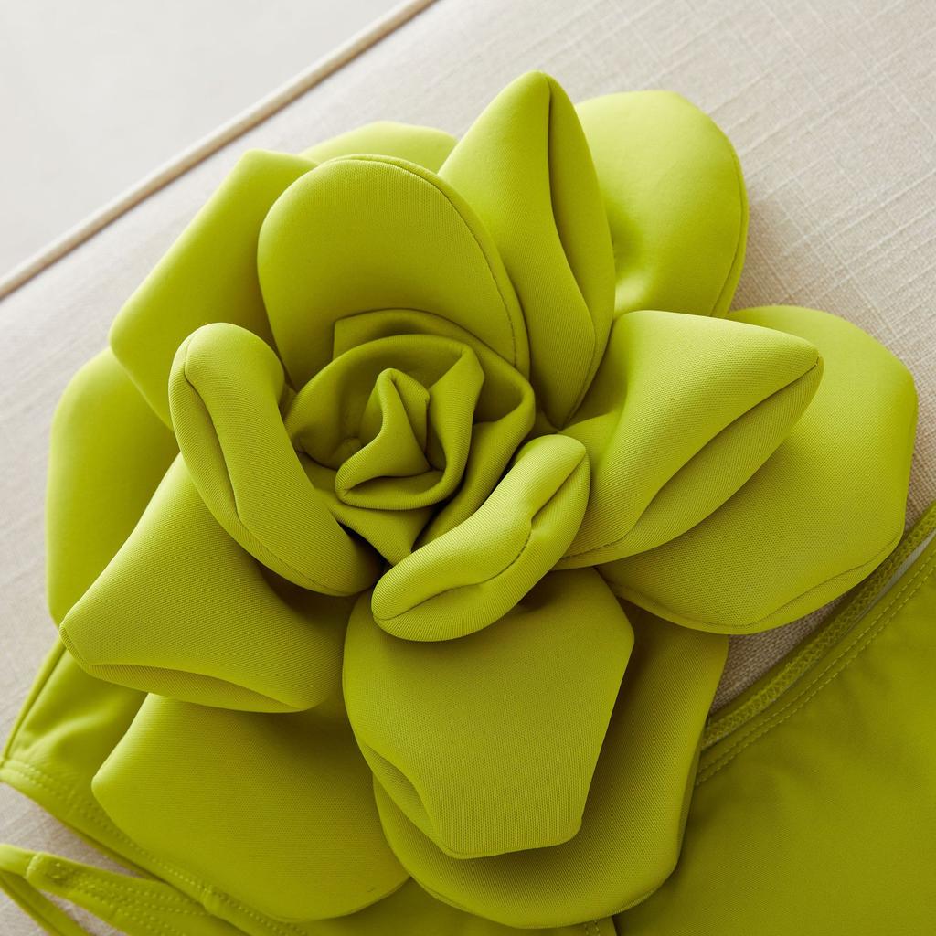 Зеленый комплект бикини из трех частей с 3D цветком, лето 2024