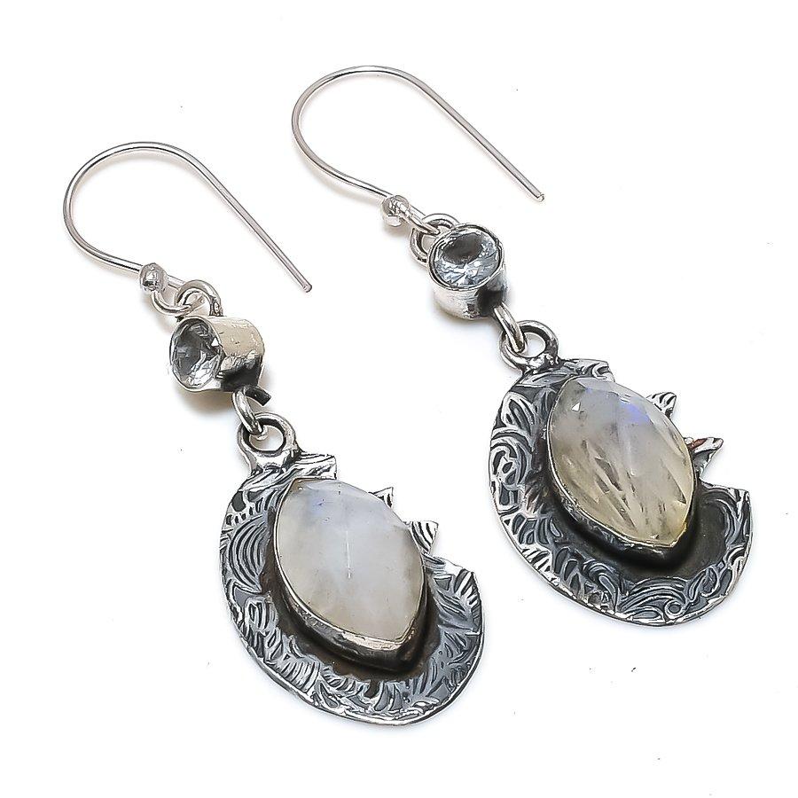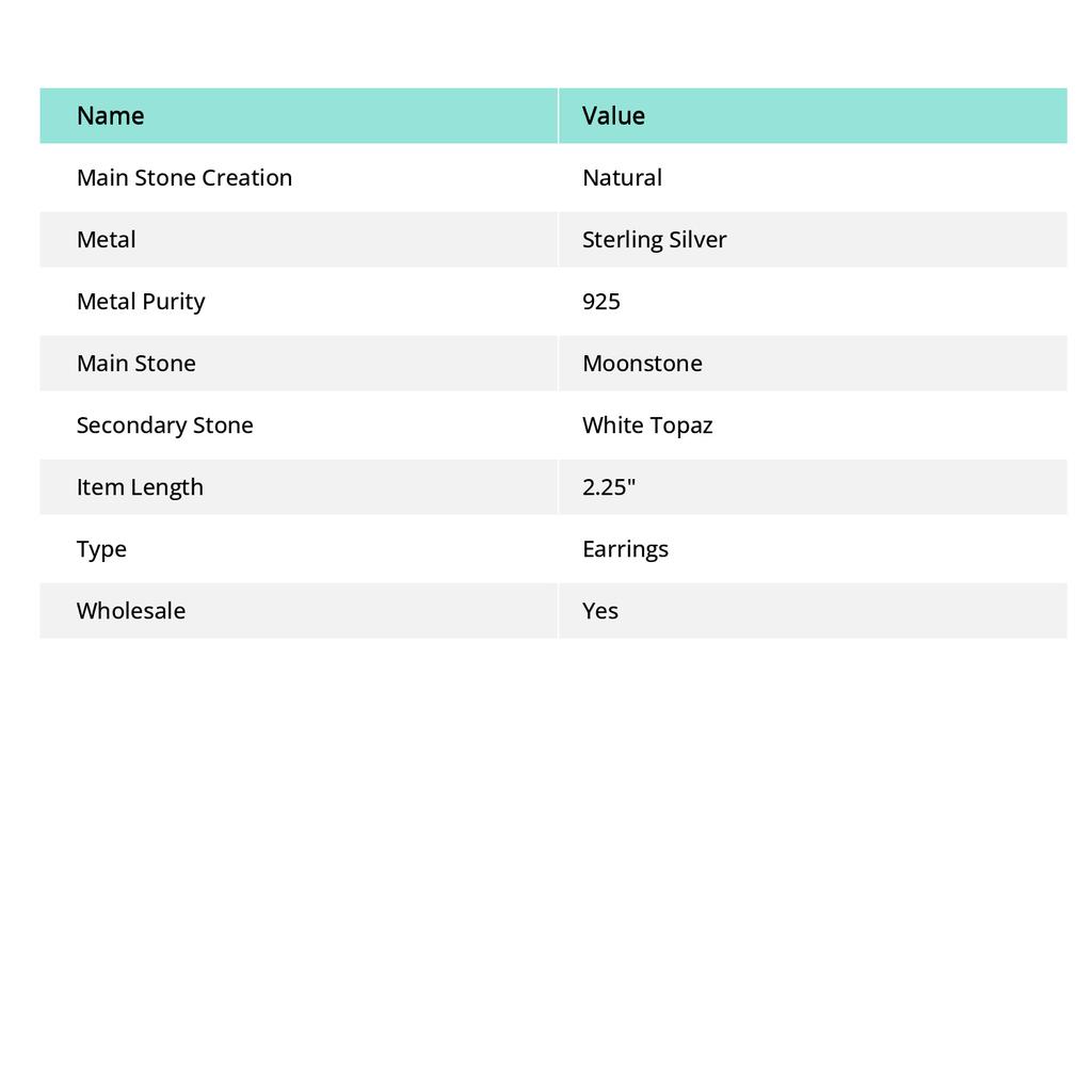 Серьги из стерлингового серебра 925 пробы с натуральным радужным лунным камнем и белым топазом 2,25 дюйма G4h24