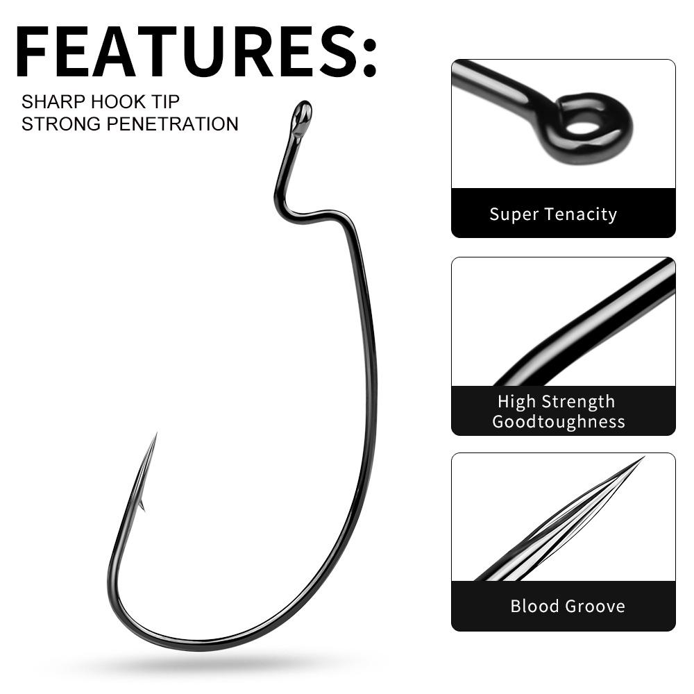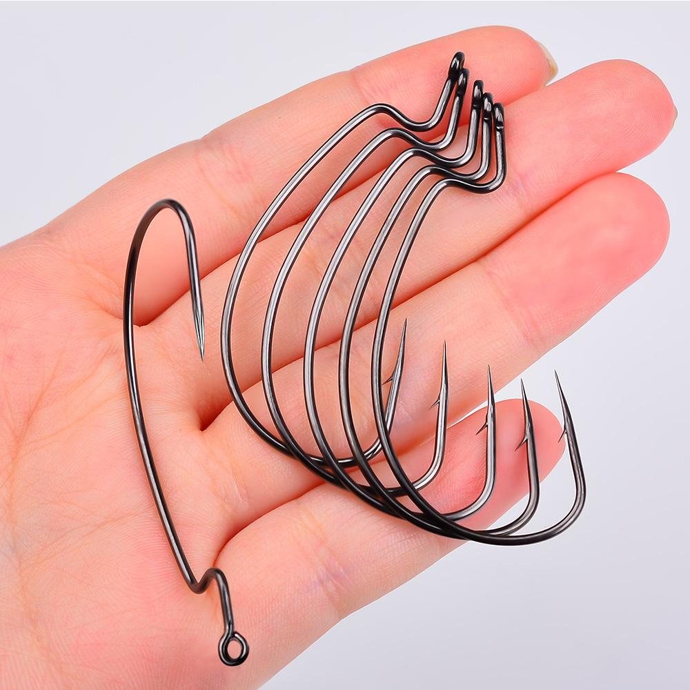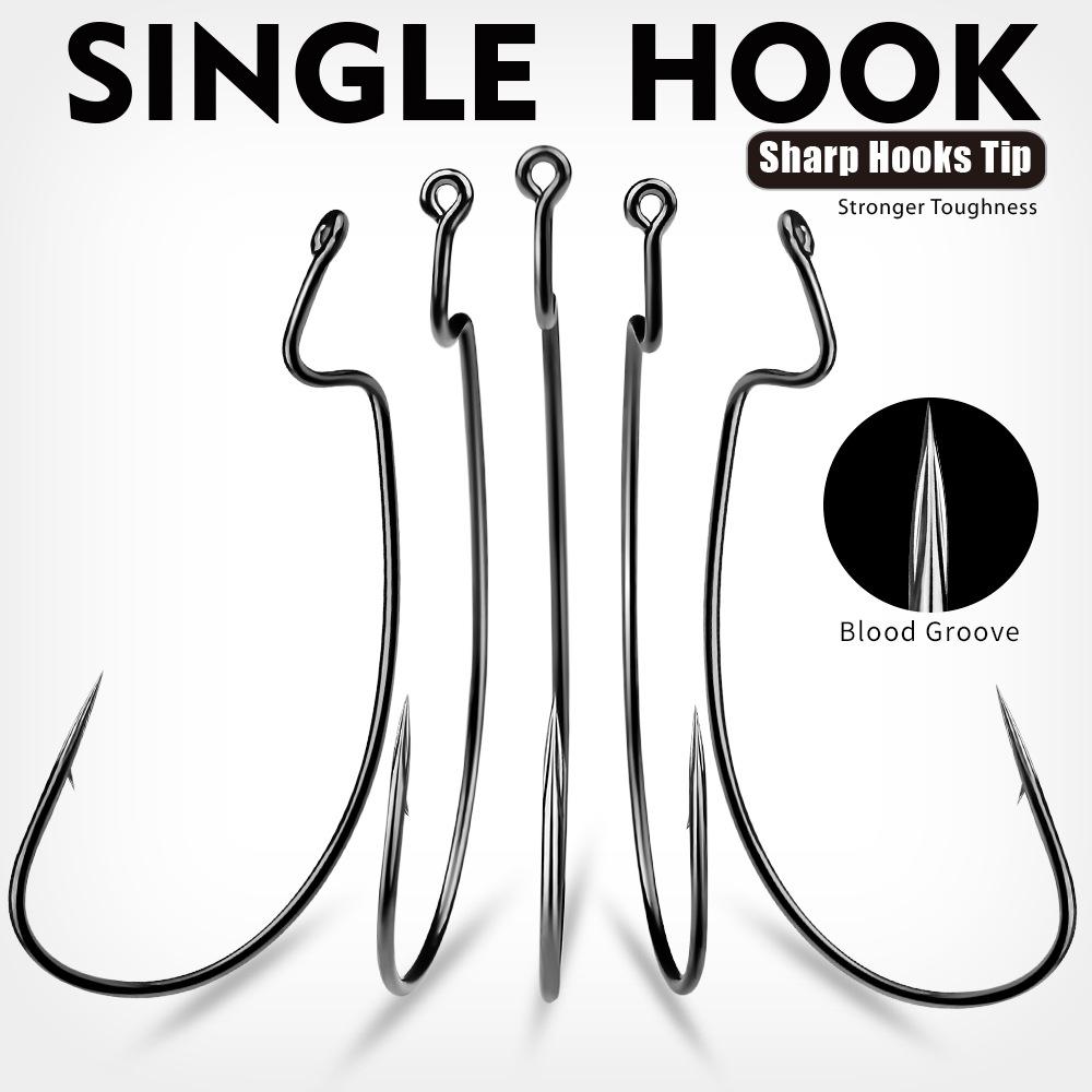 Кривошипный крючок из высокоуглеродистой стали Крючок с кровяной канавкой Заостренный путь Sub Мягкая наживка Кривошип Одинарный крючок Рыболовный набор Dezhou Мягкий крючок для насекомых 10 шт./упак.