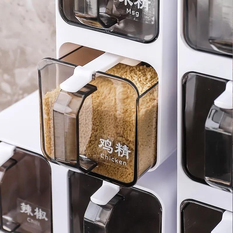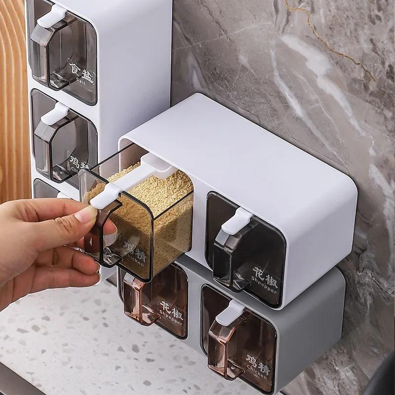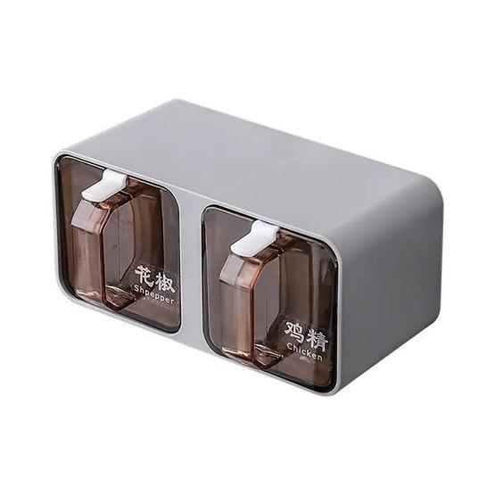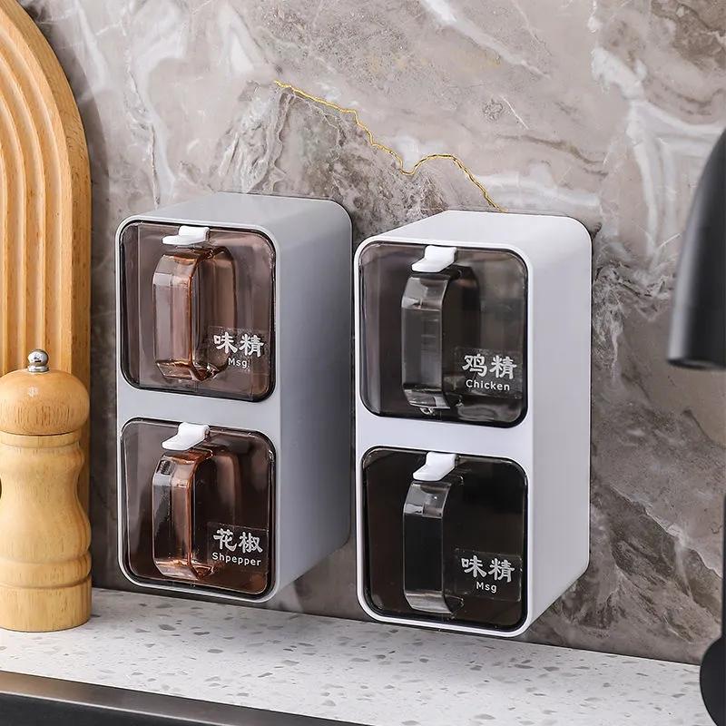 WTEMPO Кухонный ящик для хранения Утолщенная коробка для приправ с двойной решеткой Бытовая настенная банка для приправ без перфоратора с подставкой для приправ в виде ложки