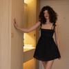 Небольшое короткое платье в европейском и американском стиле в стиле пэчворк с однотонным ремешком и короткой юбкой на подтяжках