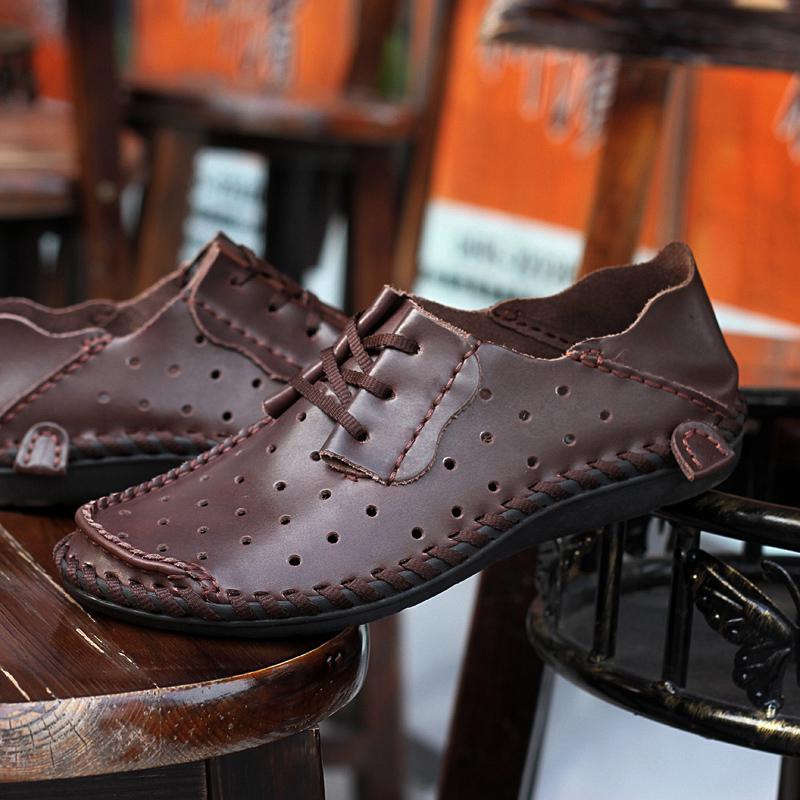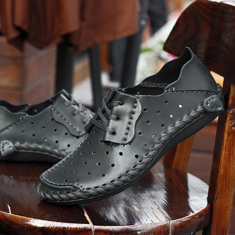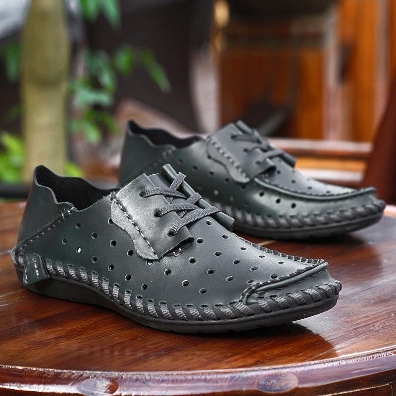 Мужские мокасины ручной работы, летние туфли для вождения, удобные туфли на плоской подошве, повседневные туфли на шнуровке больших размеров