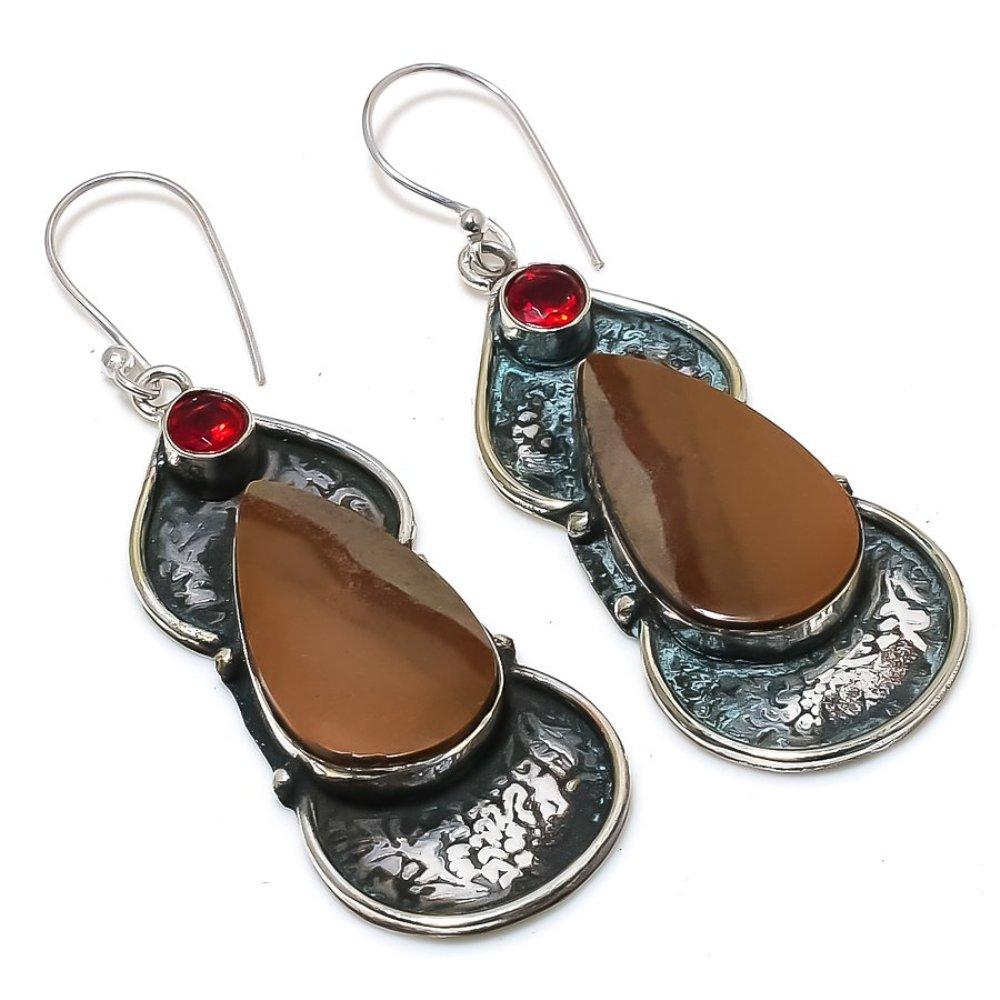 Серьги из серебра 925 пробы с натуральным мукаитом, гранатом, 2,56 дюйма Y9i82