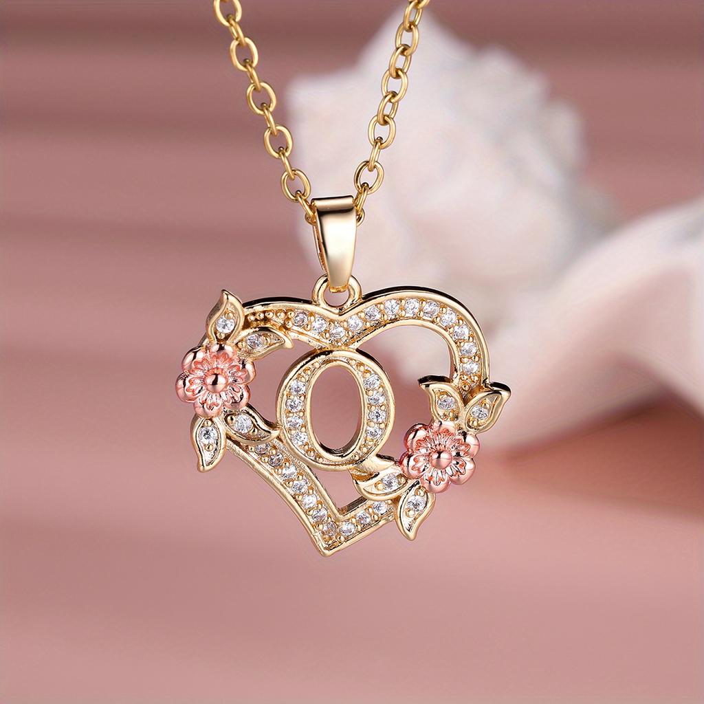 1 шт. золотого цвета 26 английских букв в форме сердца ожерелье CZ циркон розового золотого цвета цветок кулон обручальное кольцо ювелирные изделия подарок на день Святого Валентина