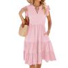 2024 Весна/Лето Новое сплошное свободное платье с v-образным вырезом и короткими рукавами на талии в стиле пэчворк