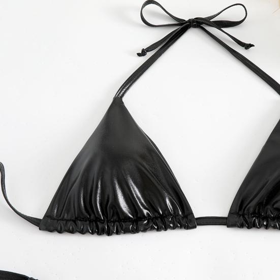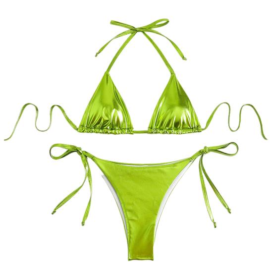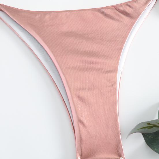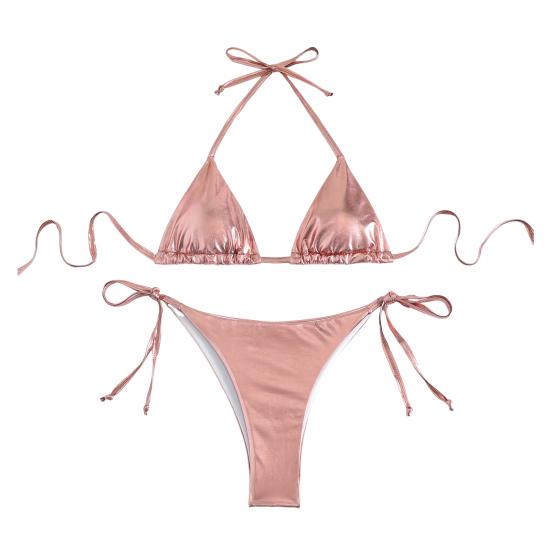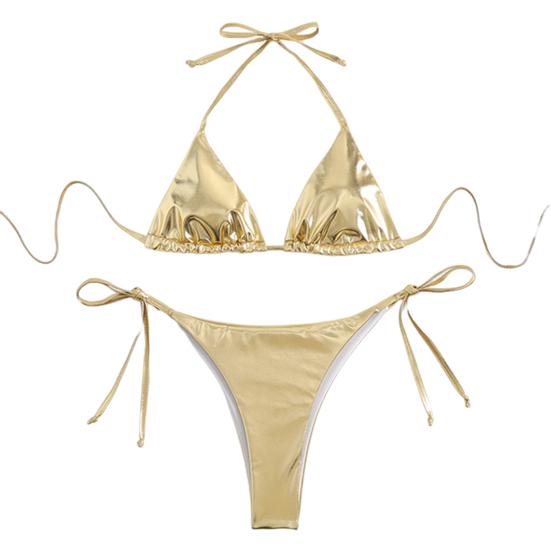 Стильный комплект бикини из двух частей с блестящей бронзовой поверхностью и элегантными бретелями для сексуального пляжного образа.