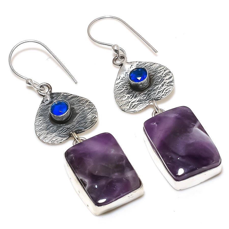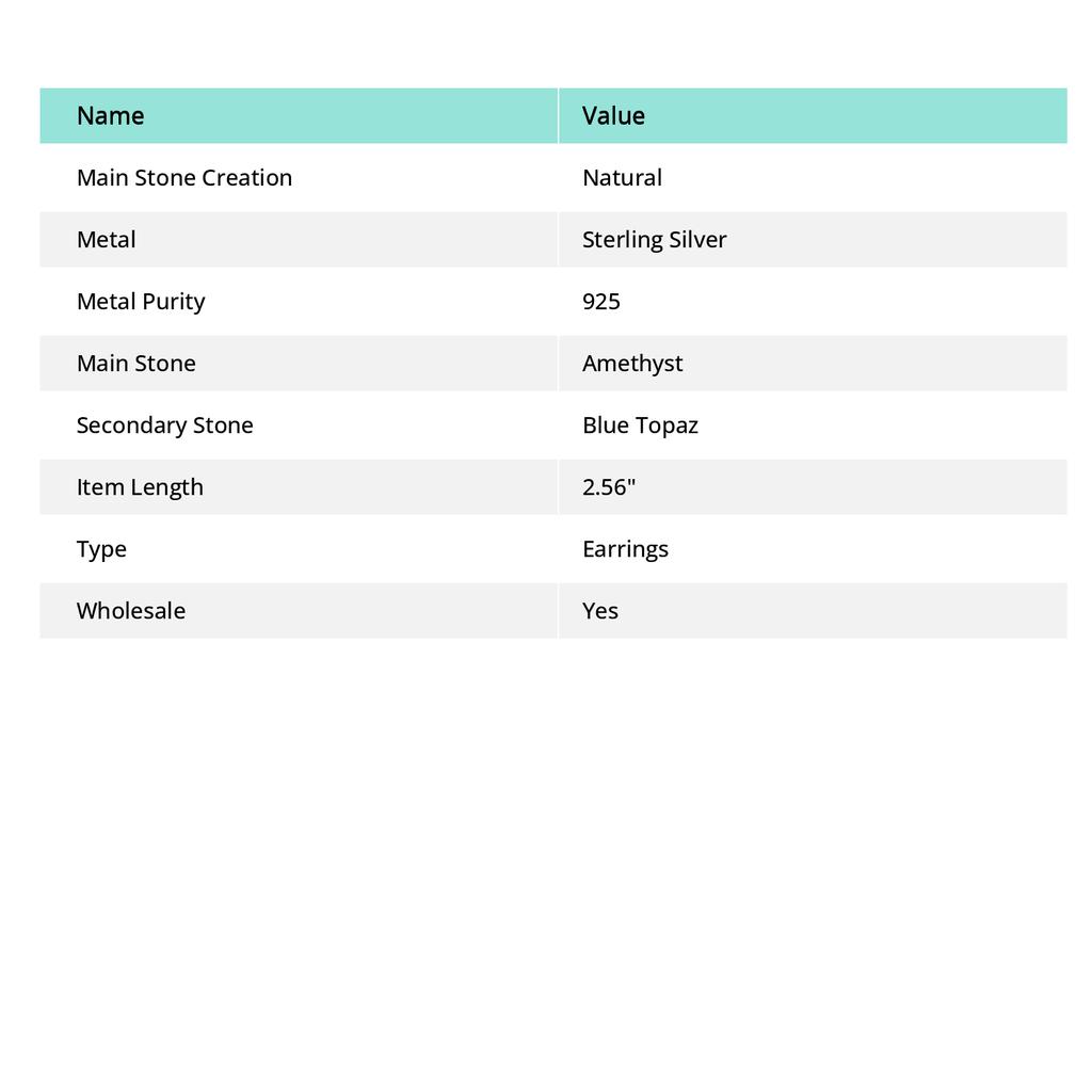 Серьги из стерлингового серебра 925 пробы с натуральным аметистом и голубым топазом, 2,56 дюйма, h6a94