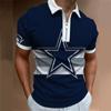 Мужская рубашка-поло, повседневная рубашка на молнии с коротким рукавом, модная повседневная рубашка на молнии на лето и весну, стандартная посадка, рубашка с 3D синим принтом пентаграммы