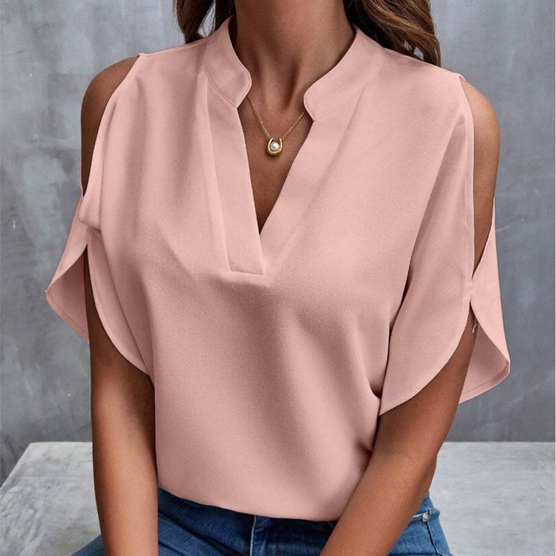 Женская шифоновая блузка с открытыми плечами, летние однотонные повседневные топы с v-образным вырезом