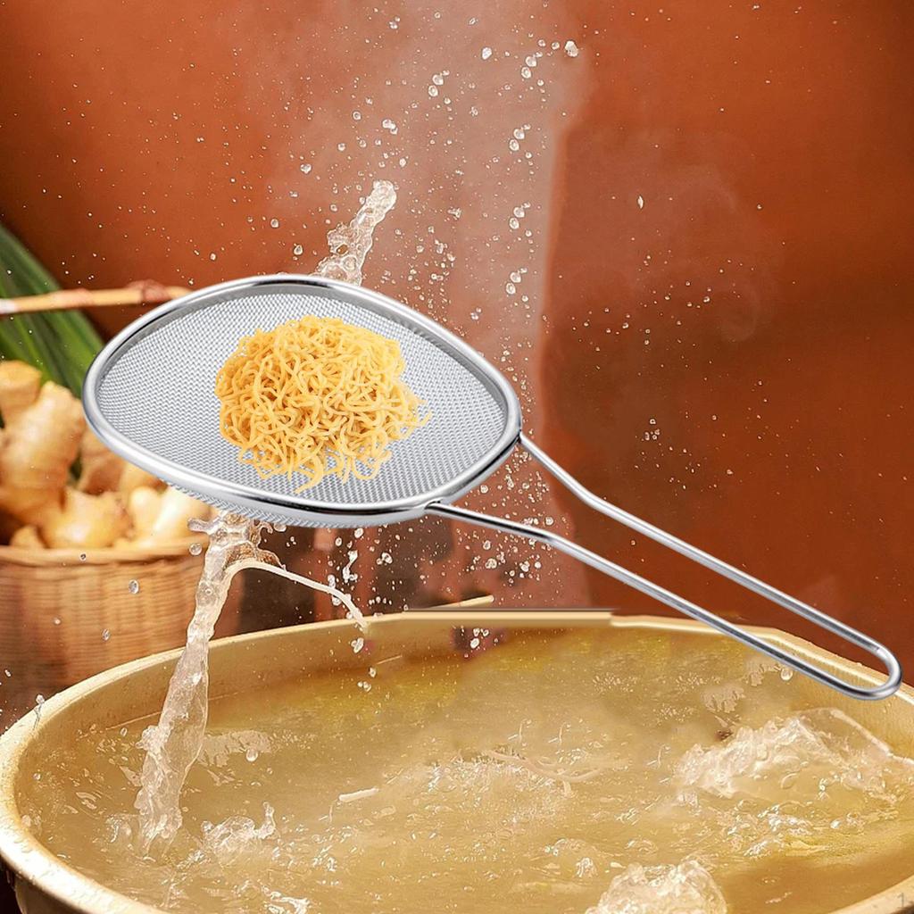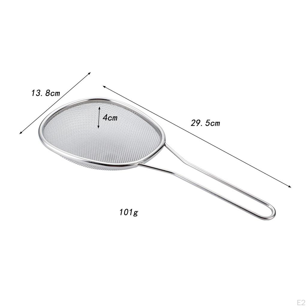 - 【Заявление】: Сетчатое сито с ручкой для кухонного риса, сока, киноа, продуктов питания, муки, выпечки, овощей, чая, ополаскивания фруктов, процеживания макарон, лапши, салата, подливки, кофе, дуршлага, фритюрницы, шумовки, сушилки и т. д.