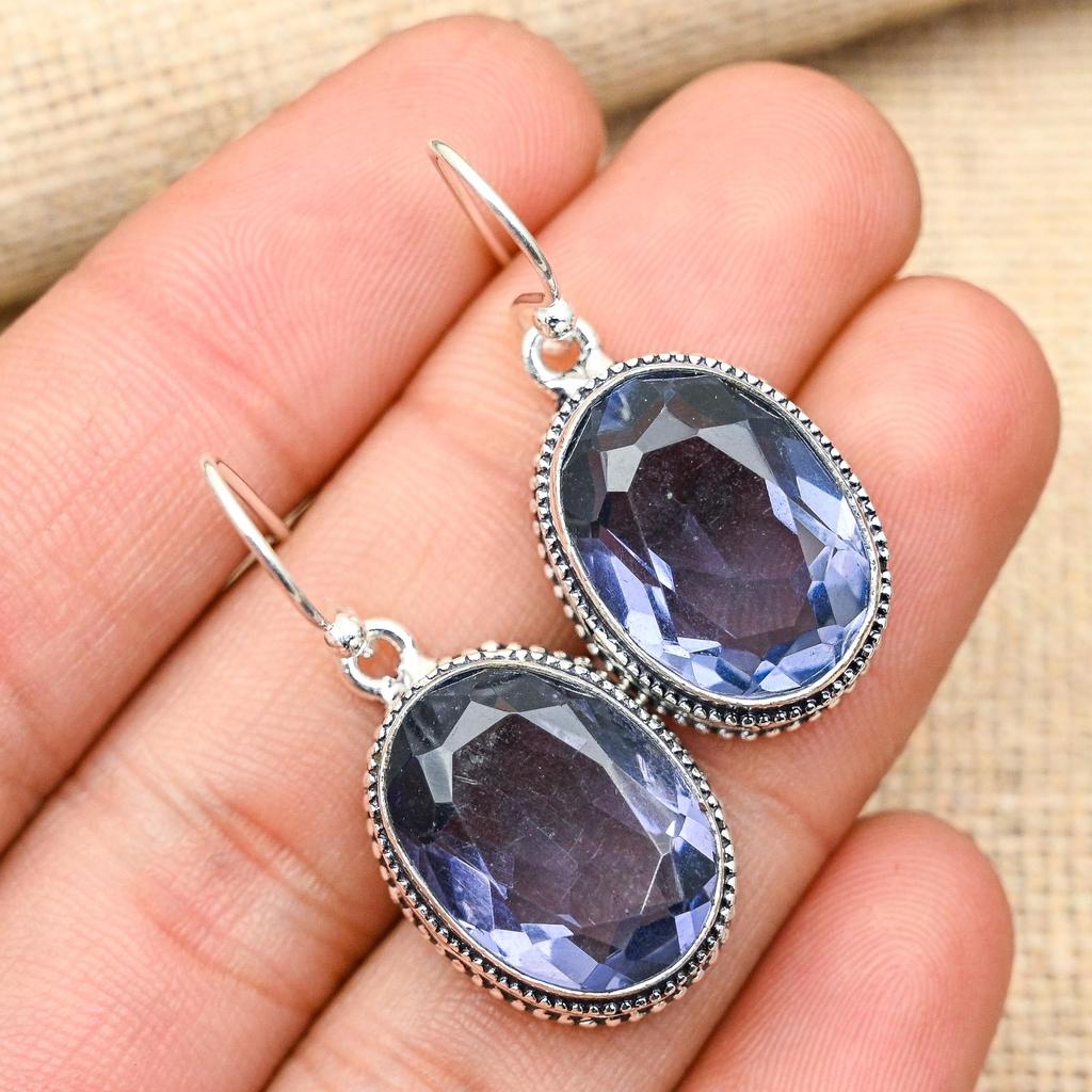 Ослепительные ювелирные серьги ручной работы из стерлингового серебра 925 пробы с драгоценным камнем иолит для нее