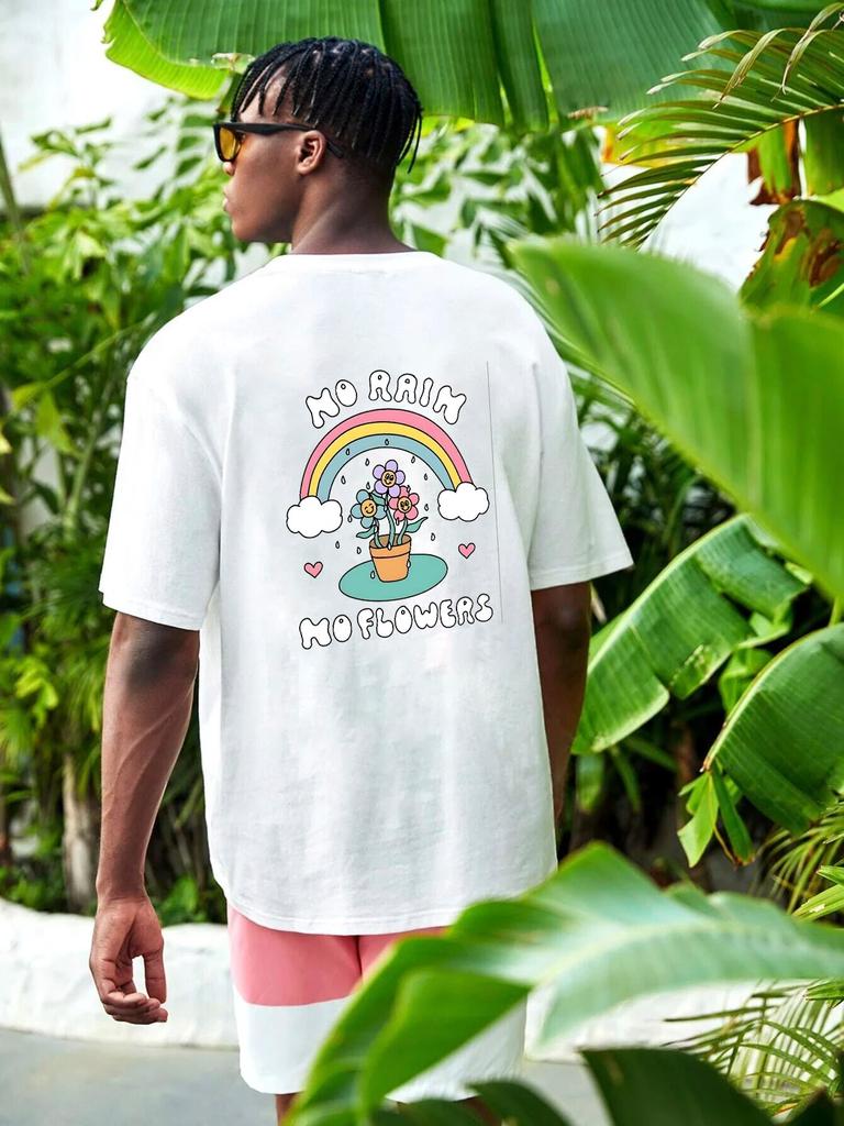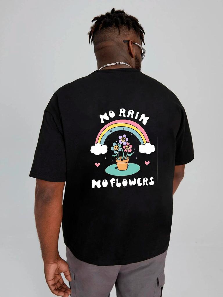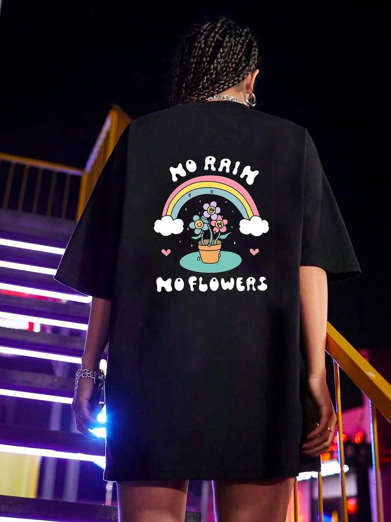 Женская футболка большого размера с надписью No Rain No Flowers, летние белые футболки с короткими рукавами, топы Y2k, хлопковые футболки в стиле хип-хоп