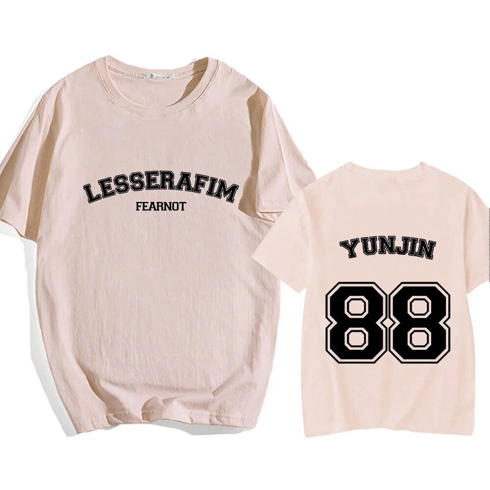 LE SSERAFIM YUNJIN 88 футболки унисекс/женские хлопковые удобные футболки высокого качества Kpop Band графические футболки с принтом мужские