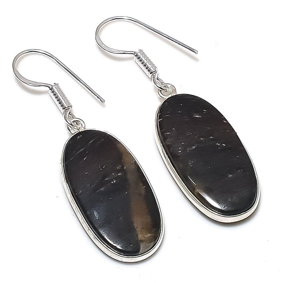 Серьги ручной работы из стерлингового серебра 925 пробы с натуральным камнем габбро 1,69 дюйма G7p46