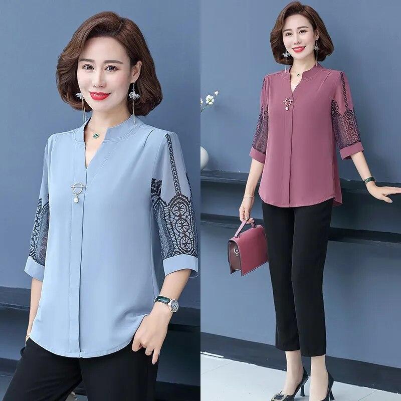 Рубашки Топы Женские блузки Офисные шифоновые рубашки Элегантные женские топы с V-образным воротником и рукавами 3/4 Blusas